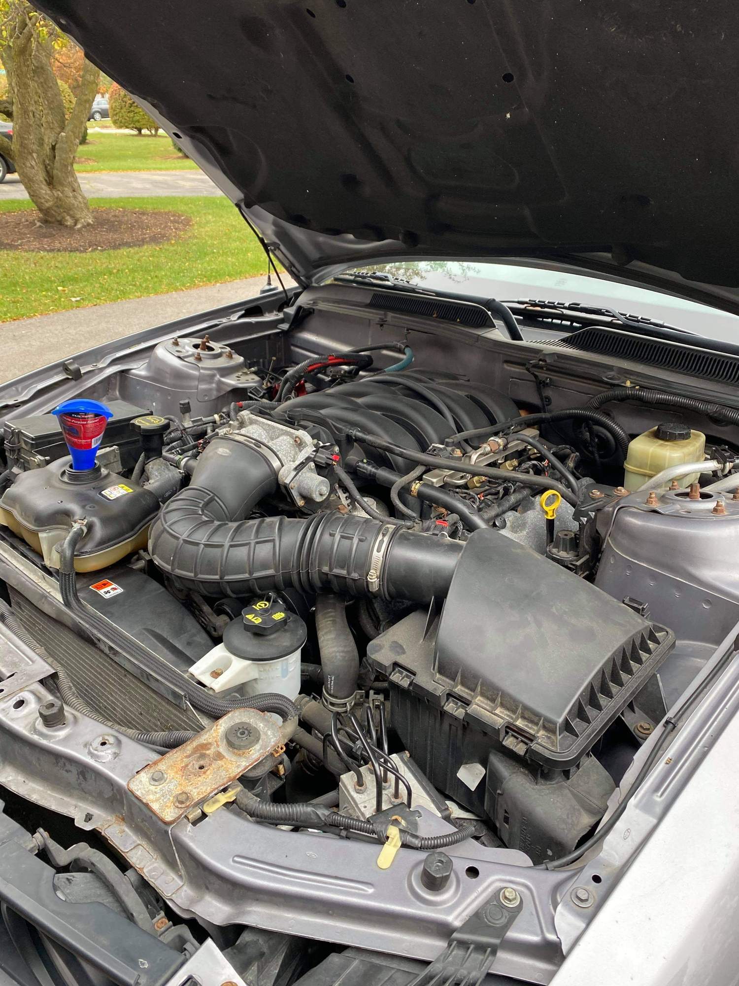 So I own a bone stock 2006 4.6L 3v Mustang GT with just over 165,000 miles on it. Last week I was driving home from work and all of a sudden the engine started acting all funny and I get an engine code. Get it home, P0016. I pull the valve covers and sure enough, timing chain skipped a tooth and the passenger side guide broke into a ton of pieces. I went and bought a new timing chain set, some new plugs, and VCT Solenoids.