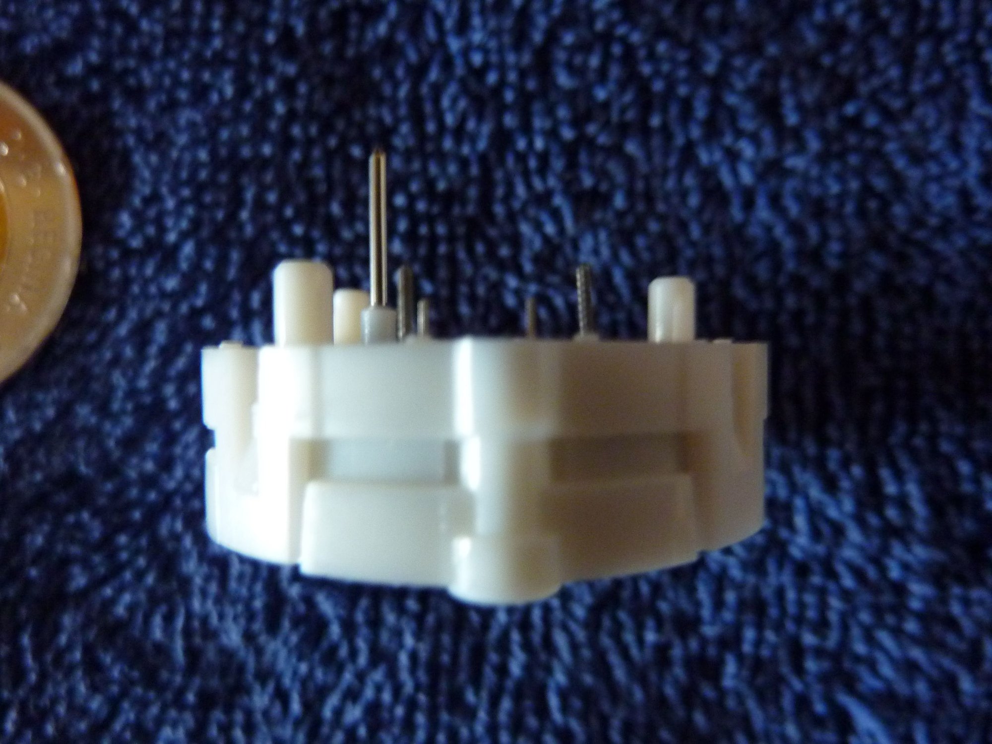 I have never done any circuit board soldering. You have to unsolder the four pins on the stepper motor, it looked easy. I couldn't get the cheezy solder sucker to work, it sucked or rather it didn't...probably just my technique. I used my own technique then, I gently grasped each motor while applying heat to each pin and the motors came out quite easy. I then held the board up to the light to check out the holes in the board and some were plugged with solder. I just flipped the board upside down and briefly touched the soldering iron tip to those holes to open them up.