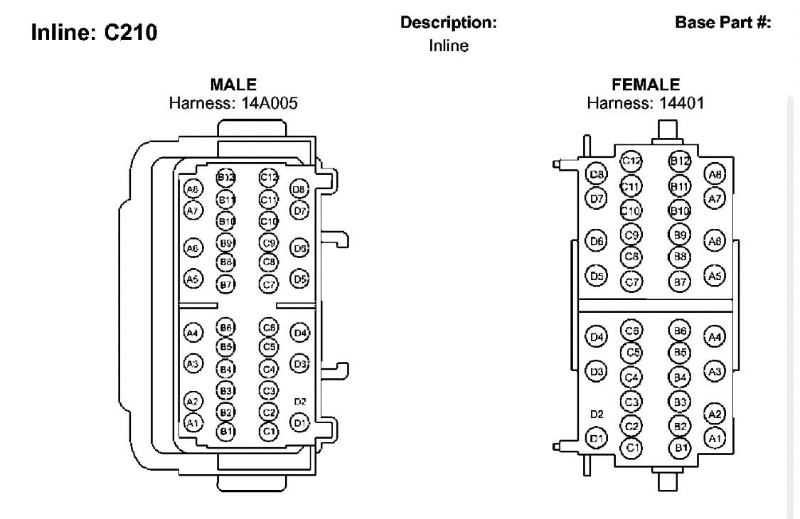 So, this connector is a Multi Junction Connector, meaning it’s a connection point for adjacent components and modules (ex. PCM>C210>Ignition Switch). It functions as a central location to loop/splice wires.