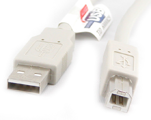 It's basically a USB printer cable. Availiable at any Best Buy, Wal Mart, etc. One end had a reg USB end and the other end looks like a fatter but narrower USB. Just ask for a printer cable.