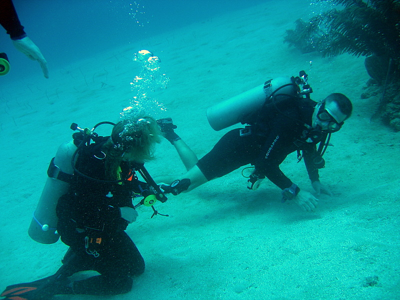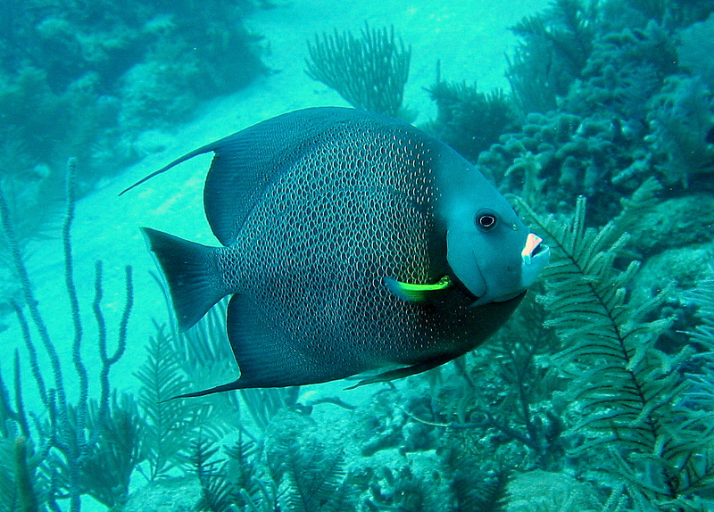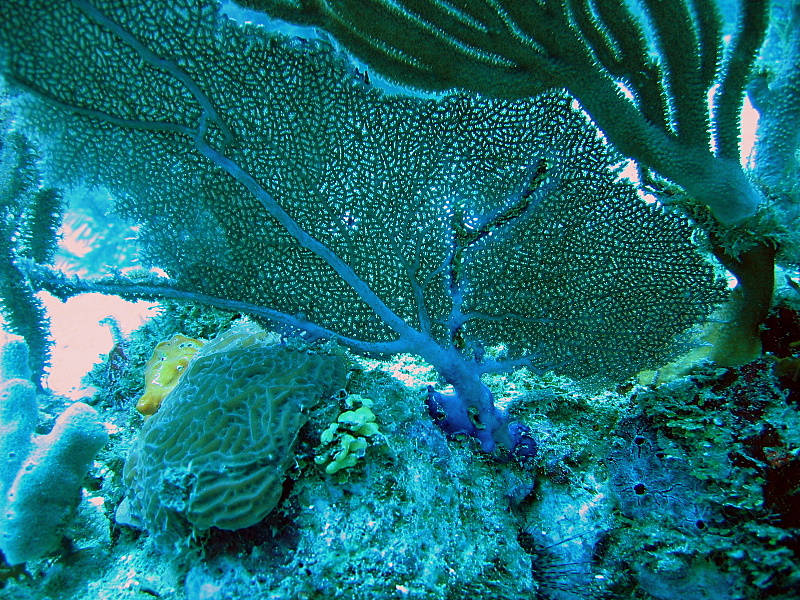 But still had a bunch of great dives and unique experiences.... On one dive I had a Remora attach itself to me a stayed with me the whole dive. That was until a Spotted Eagle Ray cruised by and it shot off to attach itself to it. Remora are those sucker fish that attached themsleves to Whale Sharks, Rays, etc. Pretty cool. On one of the night dives, we got caught in a Bait Ball of Blue Chromis (Blue reef fish about 4-5 inches long). It formed right over us and was made up of 1000's of fish. We were getting pelted by them as two Baracudas darted in and out of the ball feeding. Feeding frenzy. Pretty crazy.