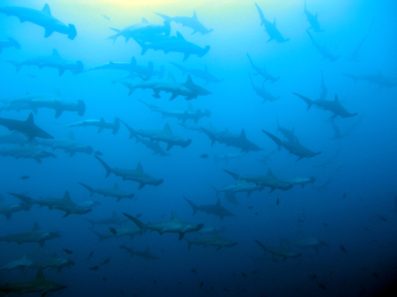 My Dive Instructor / Friend just got back from Cocos Island. This is where the Hammerheads gather, get their bearings and then head out... Cool pic. Can't wait to see his HD video.