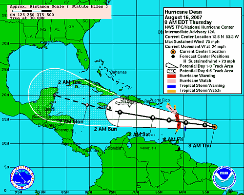 we were planning a quick trip to Cozumel possiably in Sep. looks like that might get put on hold thanks to Dean... it's suppose to be a cat 4 by the time it hits. In 2005 hurricane Wilma hit the island and screwed up the diving for a year. it even broke the huge C-53 wreck in half.
