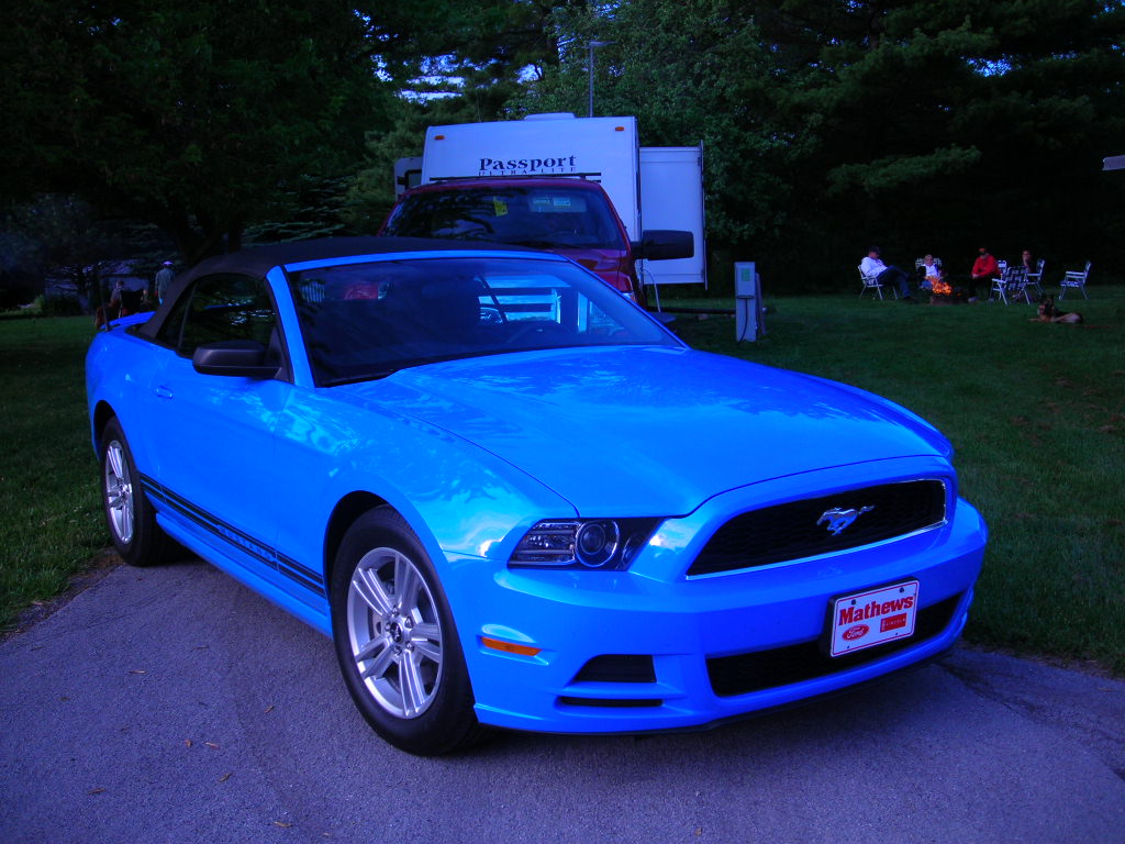 I really love the vert! Drove to Ft Wayne to have lunch with a friend today. It was a perfect top down kinda day! There were a lot of OHP & locals out looking for speeders. I pulled into a little country church parking lot about an hour from home because I'd had enough sun and while I was pulling out I see flashers pulling in behind a fellow blue stang. I hope she didn't get a ticket! I had seen him looking at me when I'd passed him a few moments before.