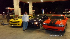 Just took delivery on 1-9-12 0f my 2012 GT Premium, Kona Blue with Stone interior. The only upgrade are the 19" wheels which is what I wanted. After lurking on the site for a while and drooling on my key board I finally have my own. I love the color, but can't seem to keep it clean...But every time I drive it I have a grin on my face! I'll throw on one pic, a 2011 Camaro SS, my Kona and me, and a 2009 Challenger SRT 8. Guess which one is quickest?