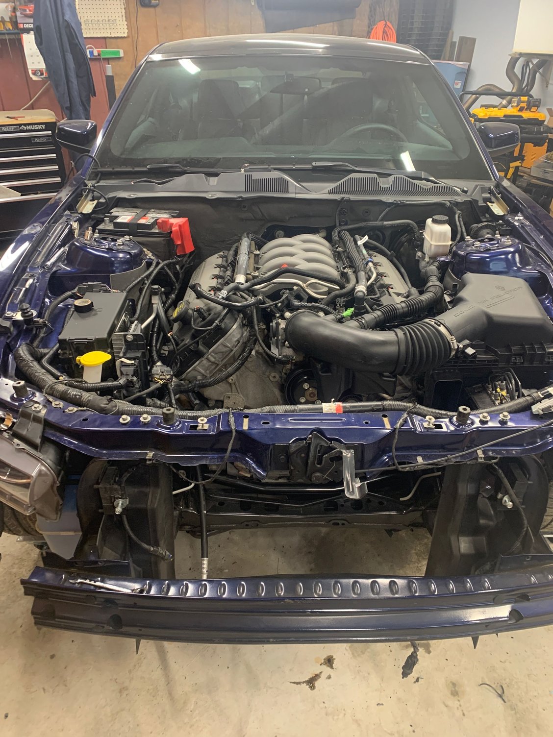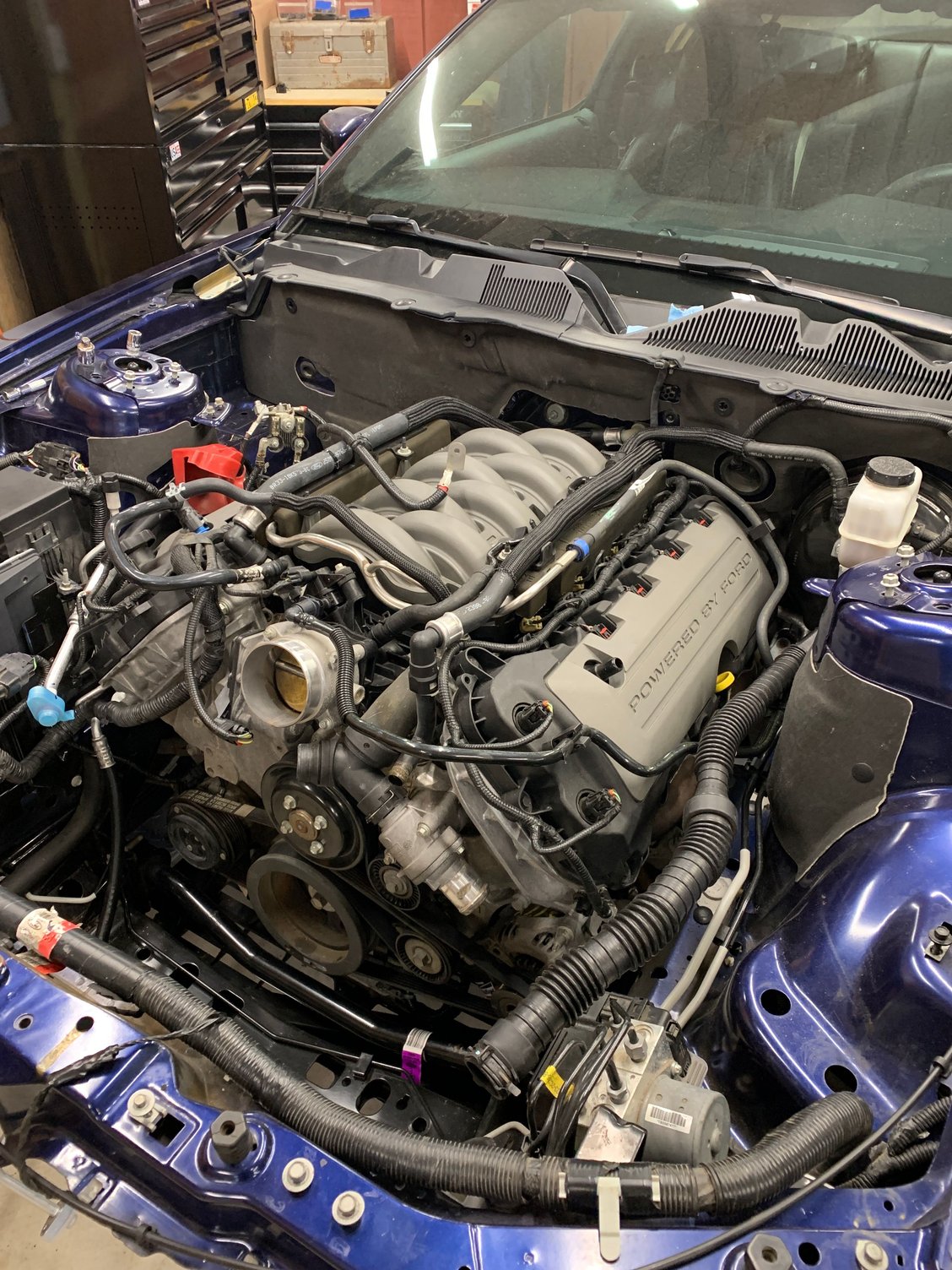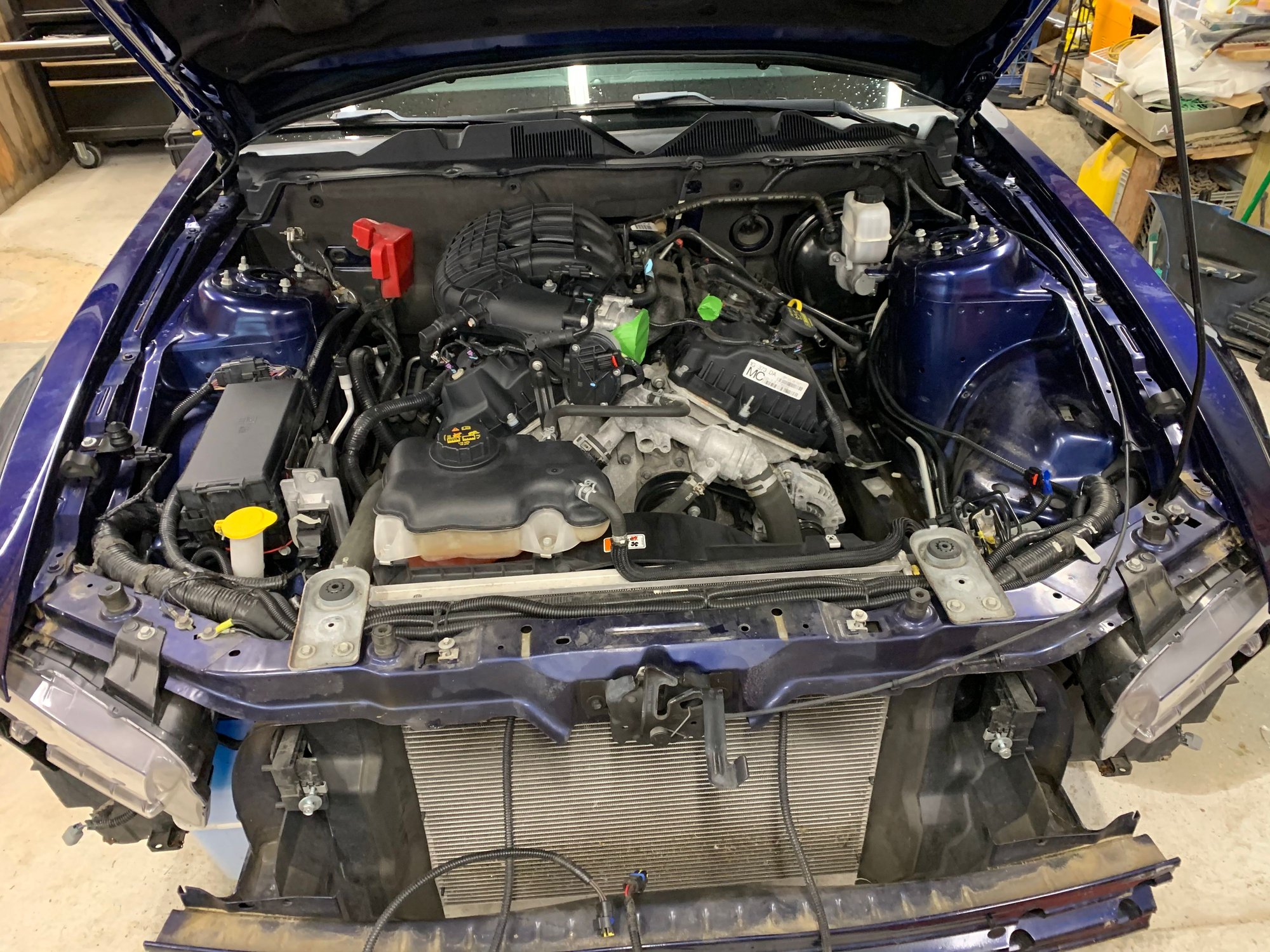 Its in and runs, still a bunch of work needed to button it up. Rear axle is getting replaced as the driveshaft is different and the v6 flange wont accept it, also wanted 3.73 gears anyways, plus best way I could find to get new gt500 over axle pipes in. Pats was disabled by the seller, so I need to get in touch with them so they can tell me how to re enable it because that cluster blinking is going to bother me to no extent. ABS module is throwing codes and track apps and virtual gauges are gone, only lead here is ABS and rest of car cannot communicate with the Power Steering Control Module, So I'm going to start with that tomorrow, make sure it has power and ground, It did not feel like I had power steering when I started the car. Worse case might need to buy a new ABS Module from ford, V6 one I had wont work (different part numbers) so I used the one from the donor motor. But might have gotten damaged in the crash. Those are the only things wrong so far. Still waiting on Catalytic converters (if any 2011-14) GT owners replaced theirs I might be interested in buying them off you.