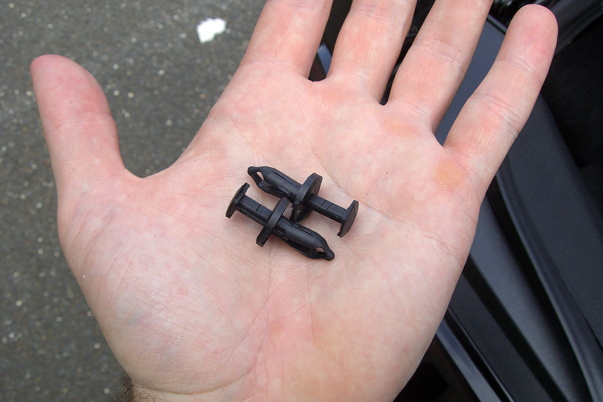Pop out the factory tabs with a screw driver and use the same ones to install the pocket pod. My car is black on black, and is parked outside next to a tree line. I knew keeping it clean was going to be a chore, so I wanted someplace to keep my spot-cleaning equipment. At about 10" wide, the pockets are not that large, but they are useful.