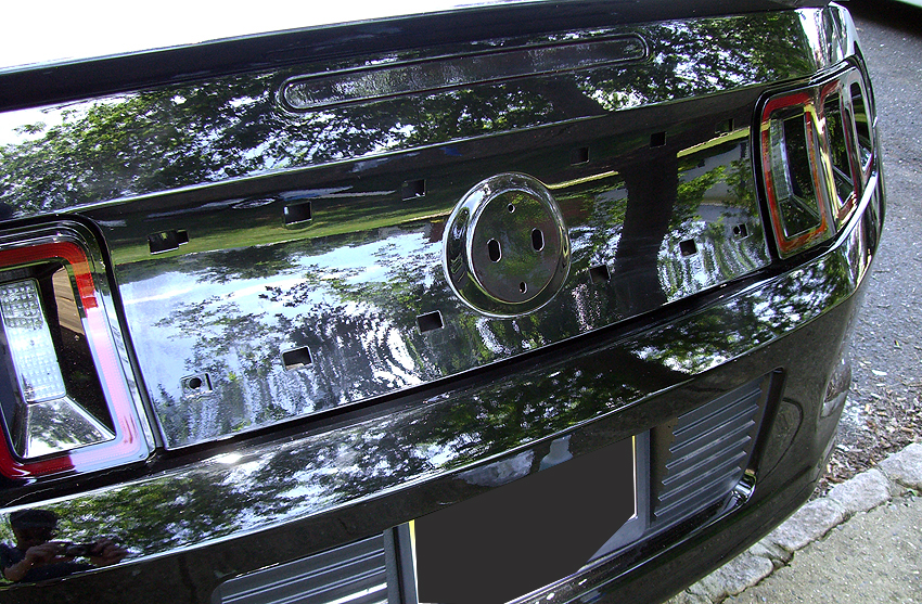 Finally, prepare the new deck lid panel by removing the corner points of the adhesive, place it where you want it (carefully), then remove the rest of the adhesive. Slide along the adhesive lines using a microfiber cloth to make sure it's all down.