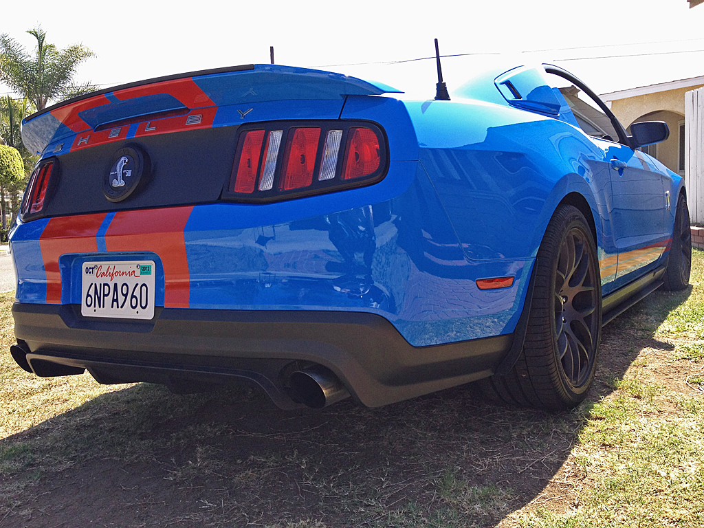 Love your car color with stripes. Never seen that combo, very hot. But, I'm not a fan of the rear black-out panel (posted earlier), and not a fan of the black plasti-crap on the faux gas cap. I say put it back to normal and admire it's beauty, 'cuz it looks great.