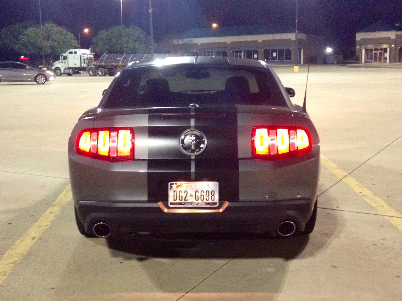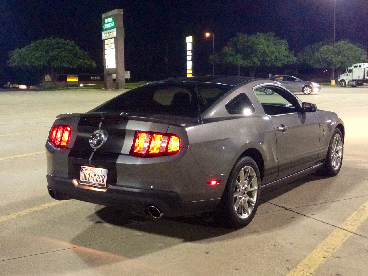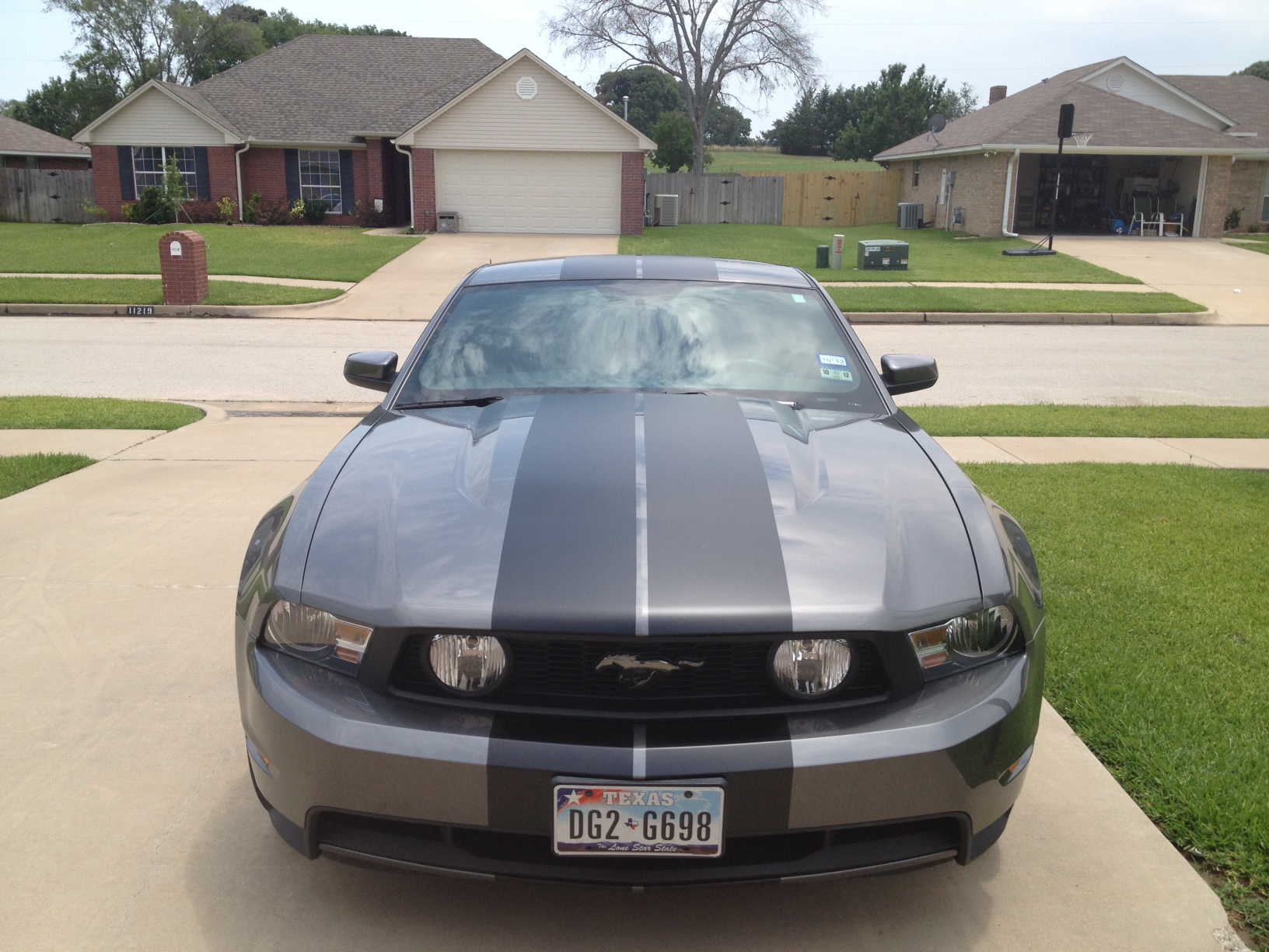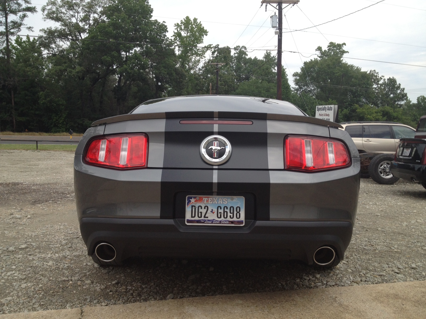 So a couple weeks ago, I was in a wreck in Arlington. A girl slammed into me from behind and knocked me into the car in front of me. Needless to say, both bumpers and my Borla touring exhaust all need replacing. Well I'm taking this opportunity to upgrade to the GT front bumper/grill and rear valance (am I the only one who actually prefers the GT rear valance to the GT500 one? but I digress...). I'm also switching to the S-Type mufflers as I want something a little louder than the Touring. And to top it all off, he's going to paint matte black racing stripes down the center of the car (10.5 inch stripes with 7/8 inch gap in between). And don't worry, I'm not badging it out like a GT...not trying to pass it off as a GT, just like the front end a whole lot more. Definitely more aggressive...