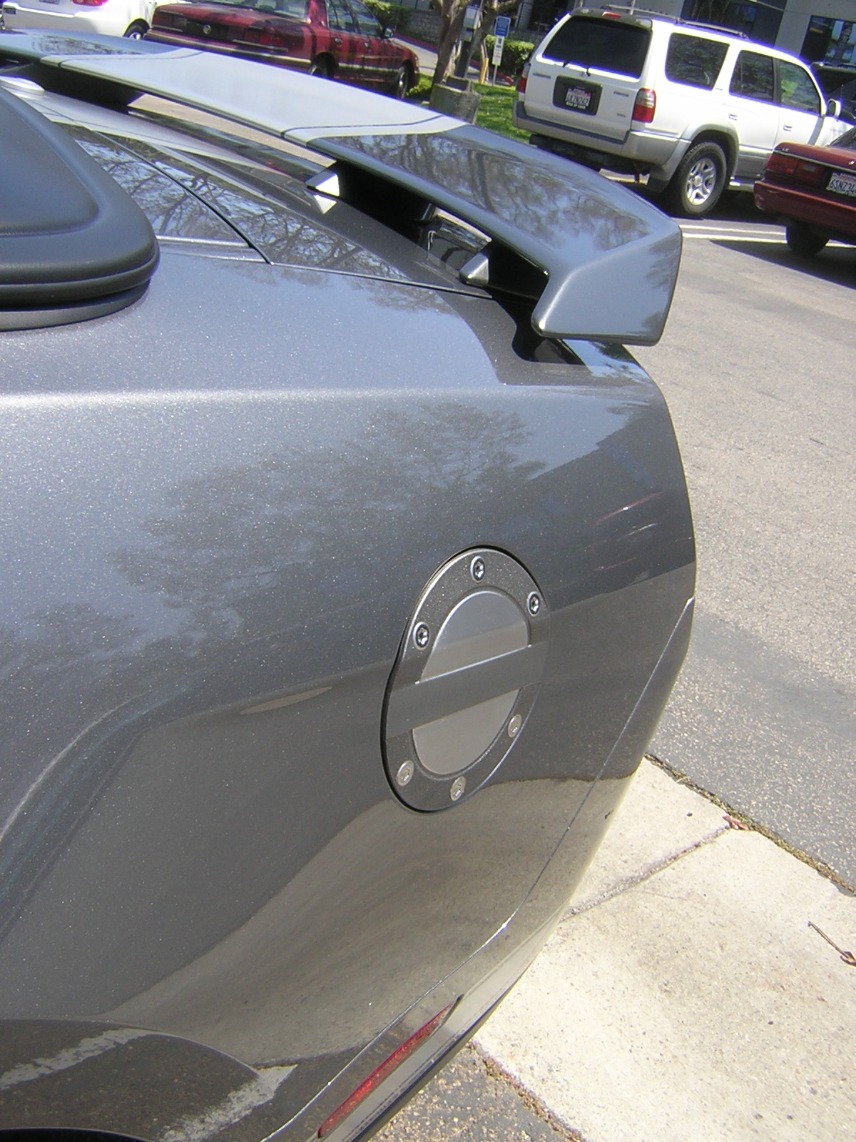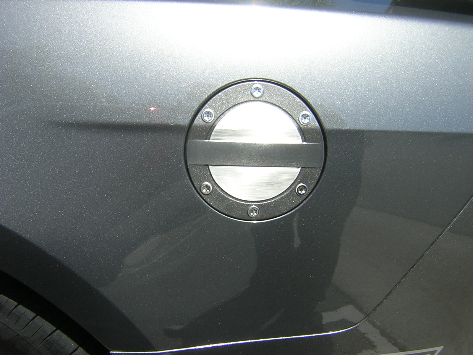 I picked up the chrome faux gas cap overlay from CarID. I sanded it to get a brushed aluminum finish, painted the outer ring and center band in two shades of grey, leaving the fake bolts in chrome. For about $25, I think it achieved the look I wanted. Not sure how the billet ones work with the capless fuel seal but this has no effect on that.