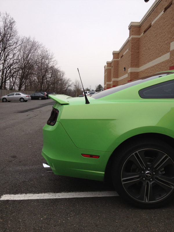 I put the prepainted AM GT500 rear spoiler on my '13 GT. After you drill the holes in your trunk lid double check to make sure the holes line up before pulling the strips off the tape. I hade to slot 2 of the hole in my trunk lid to get my spoiler to bolt up. Looks good though!
