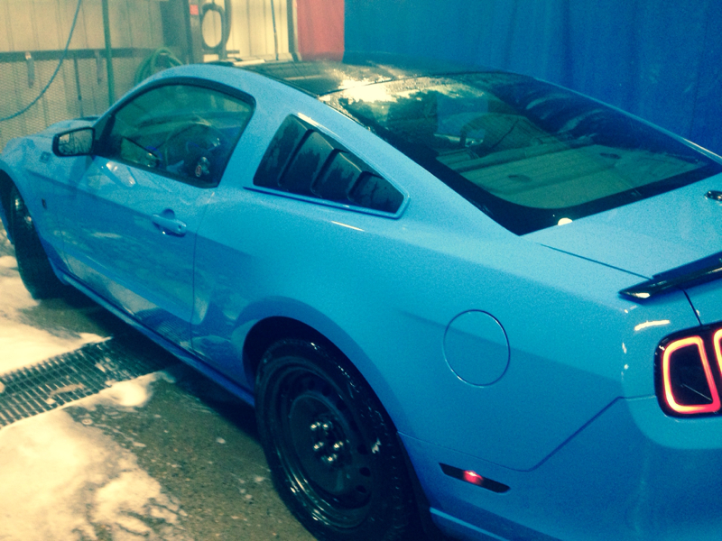 The last thing I want to do is pay to paint this thing to match, then change it to black later. Also, there are plenty of other black items on the car. The 5.0 emblems were replaced with black ones, the windows are tinted dark, we have the Roush upper and lower front grilles and the entire splitter set. The rear also has the GT500 rear valence, so there is some contrast to the Ruby Red.