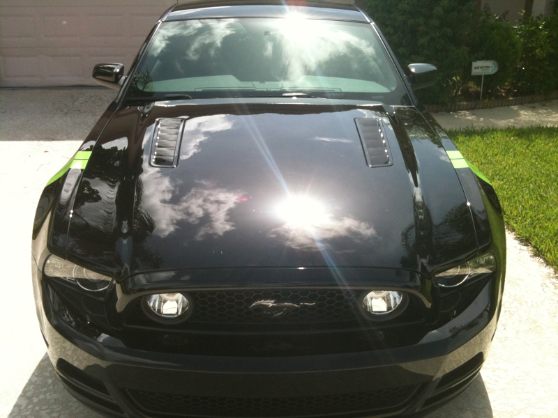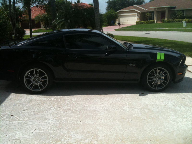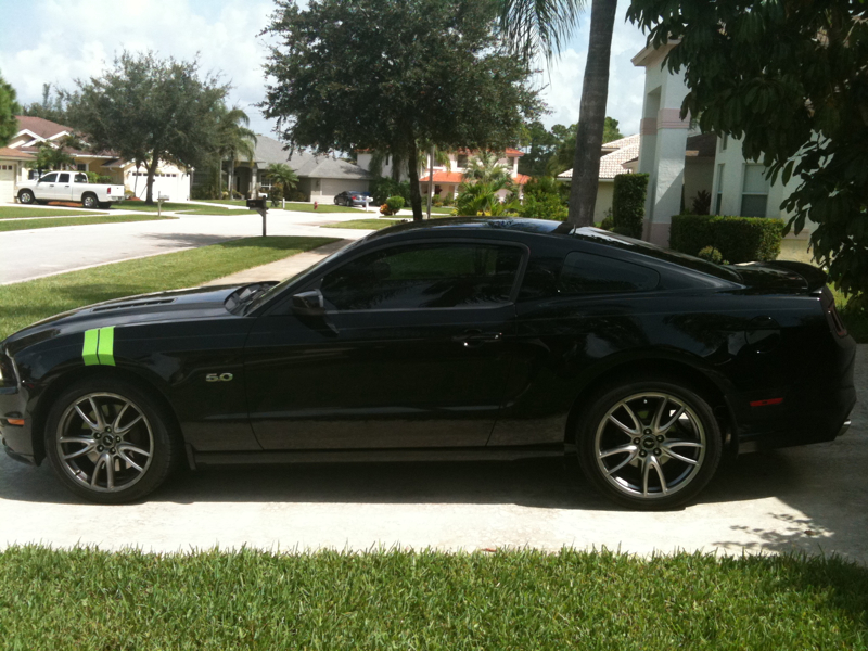 Would have rather seen those stripes in the Shelby format bumper to bumper in that color.. The color selection is hawt if I do say so. Does not look bad, I have seen these type of stripes on BMW and on Mopar cars.