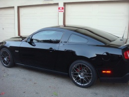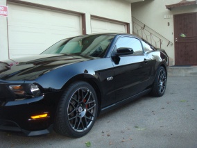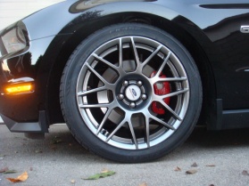 I have installed the wheels on my black 5.0 but i need to figure out how to resize the pictures. The wheels are absolutely amazing in person, the quality is top of the line. They're on Falken 452 255/40/19 front and 285/35/19 rear. Let me tell you that there's no fit issue like some people were having with the RTR wheels. The rears (19X10) are still inside the fender. The car looks better now with the Roush springs.