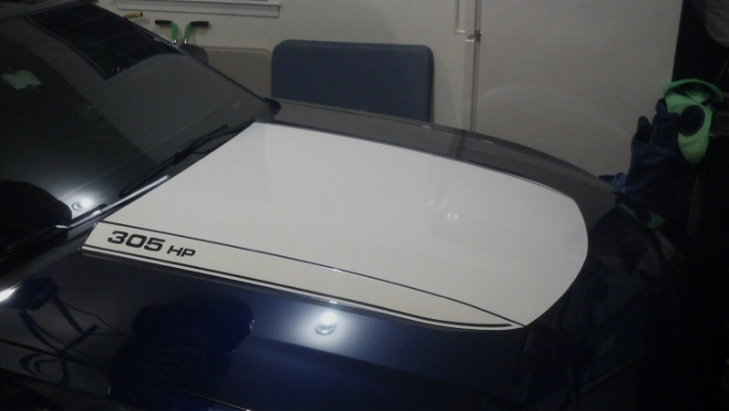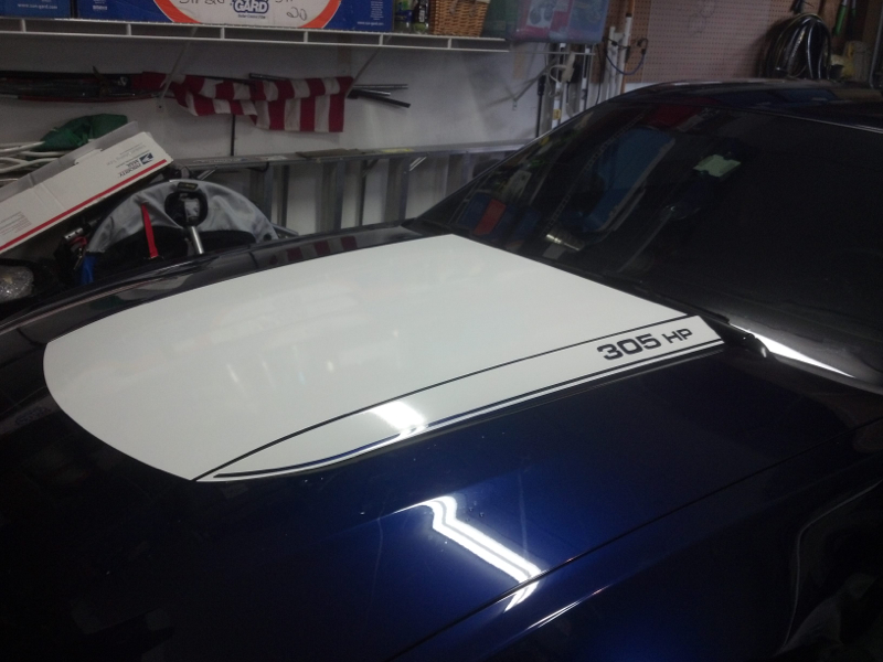 Like your stripes, very similar to what I did I went with the tribar pony on the "C" stripes My vinyl stripes on the hood and rear deck lip went bad after a year. I removed the vinyl and had custom stripes painted on the hood and will last the life of the car
