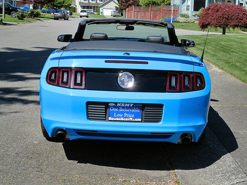 Stock 2014 V6 convertible, but I live in a state where it is definitely possible to get a ticket for no front plate, especially in Eastern Washington where the troopers don't have so many pressing matters to deal with. So here is my solution for avoiding a ticket without messing up the front bumper.