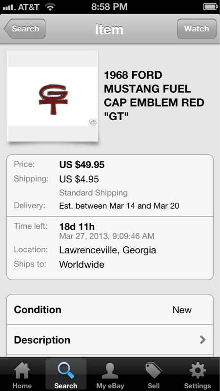 It could also be from the hubcap of a 68 Mustang GT (or even a Torino GT). If so, the price is much more digestible: