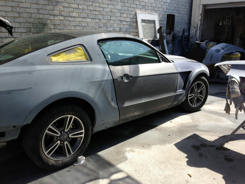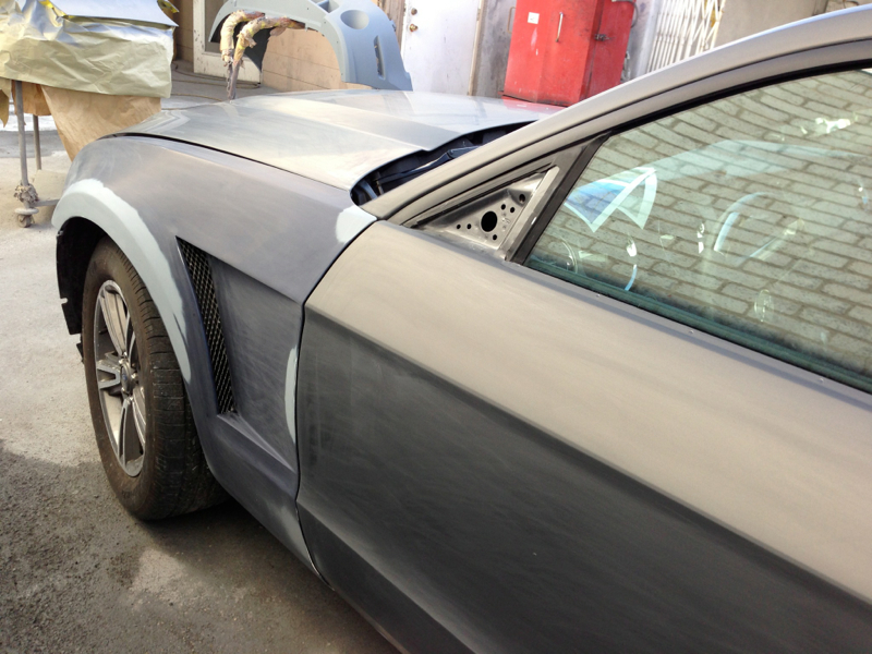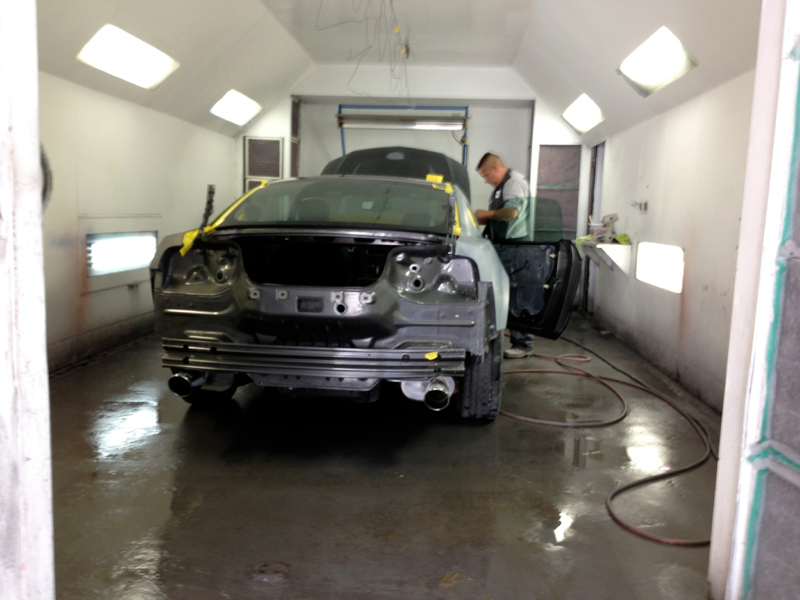 Here's what they're doing... painting side stripes to accent my trufiber T1 fender side vents... among other major body modifications.