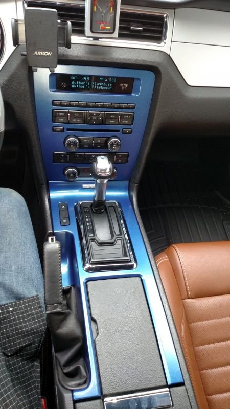 My car is Deep Impact Blue, hence the blue center console. I'm leaving the dash and steering wheel their stock brushed aluminum.