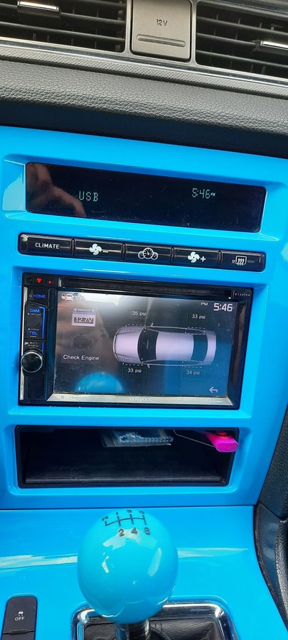 So here is an integration, standard radio was there, "Sync" still there and working. Two more USB connectors under the radio. Buttons above radio activate either the instruments to the radio screen or climate controls to touch screen. Also tpms and check engine light, with a touch it will display any codes.