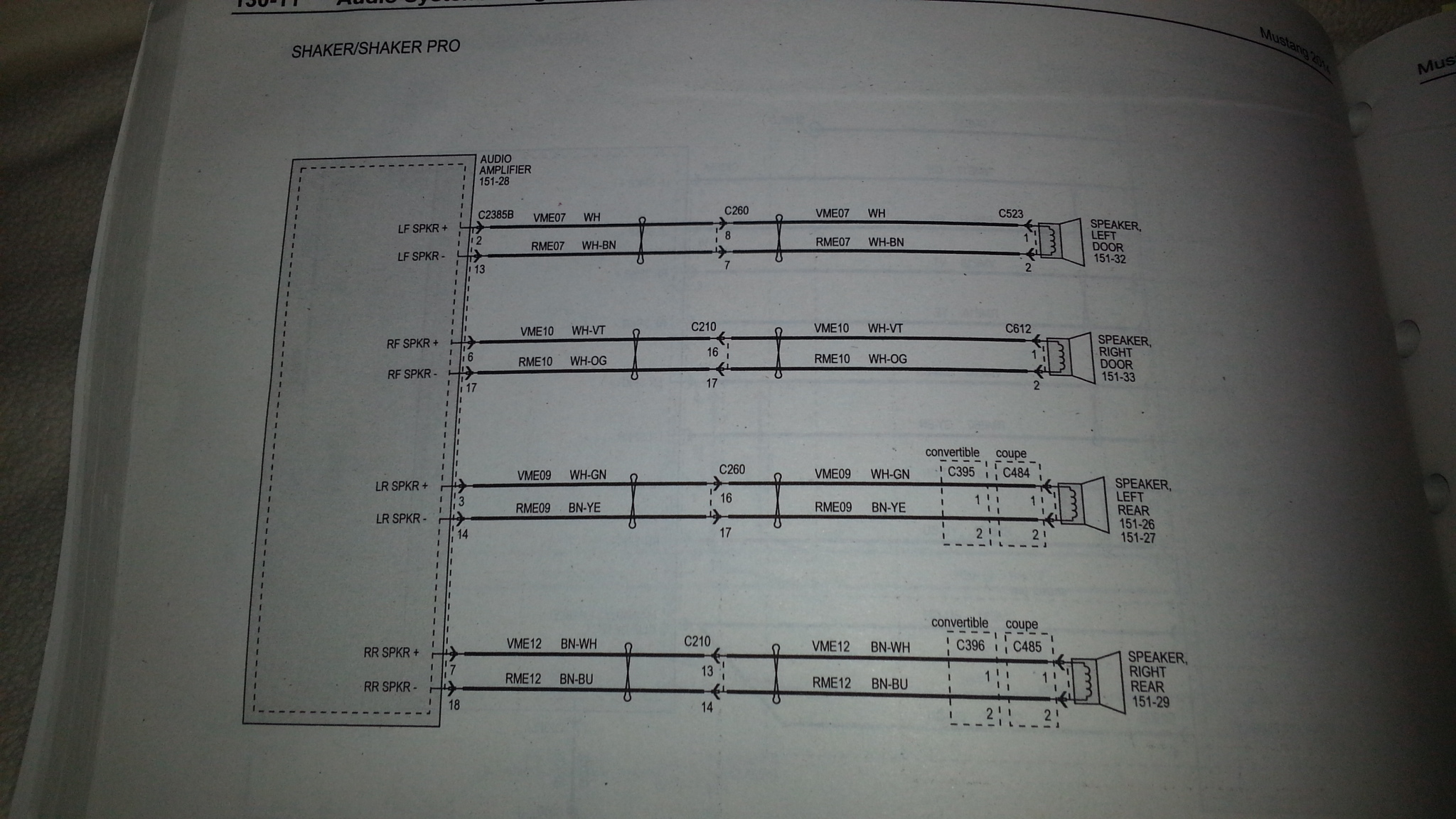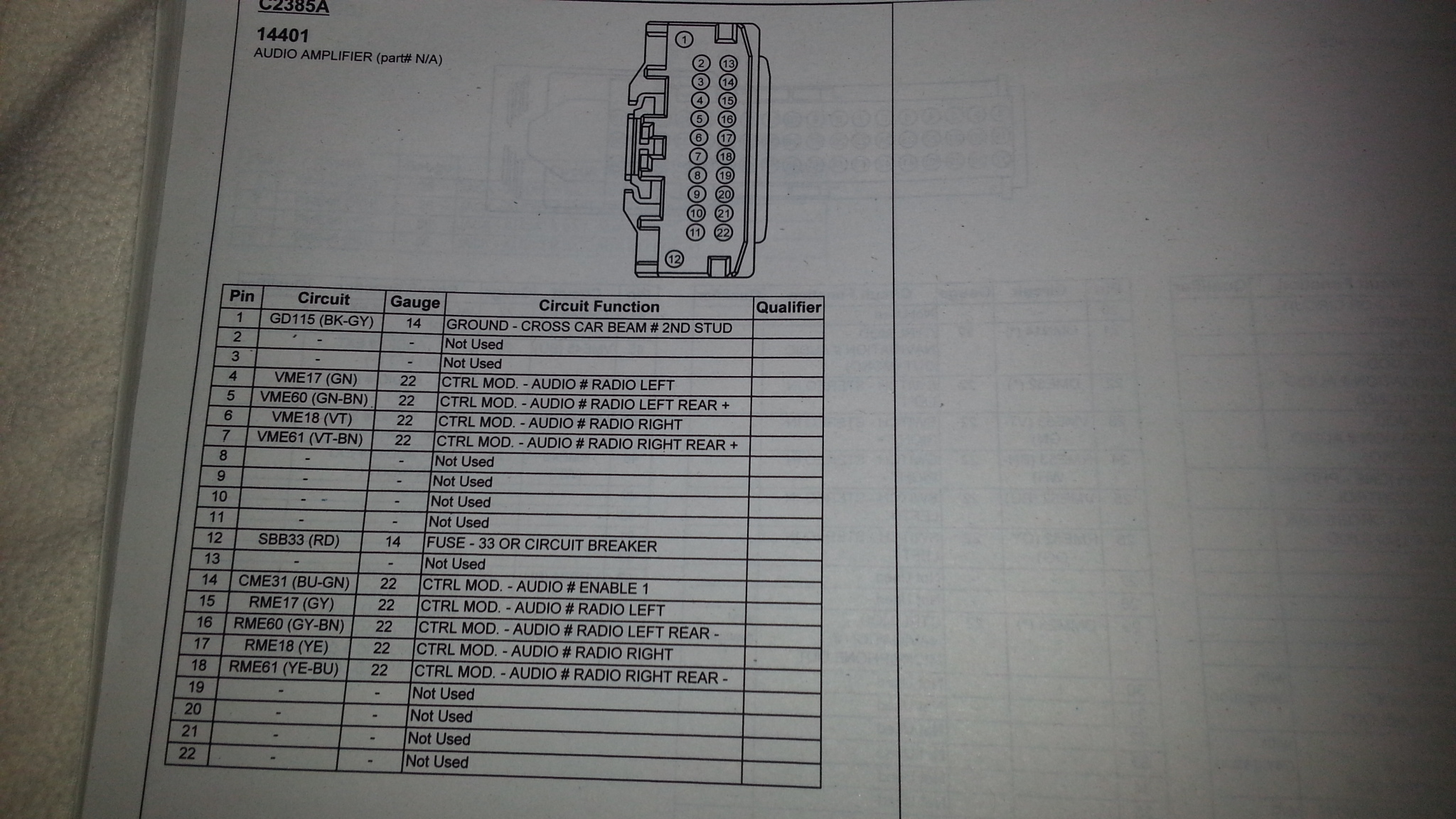 That definitely confirms it - there are 4 channels (Front L/R and Rear L/R - 8 audio wires) coming into the Amp, and then 8 channels coming out (Front/Rear and two door subs with dual voice coils - 16 wires) for 2014 Shaker. This would also confirm the factory amp has the cross-over built-in to drive the door subs.