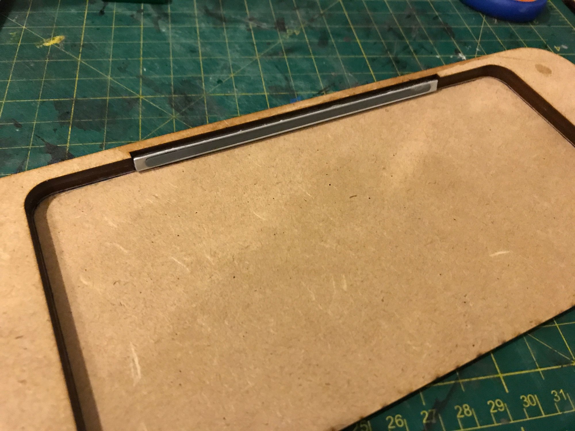 I pasted all the layers with contact cement, and before adding the las piece, I glued a magnetic strip on the top to hold the ipad in place, which I took from one of those chinese smart covers for the ipad. I then added the last piece on top.