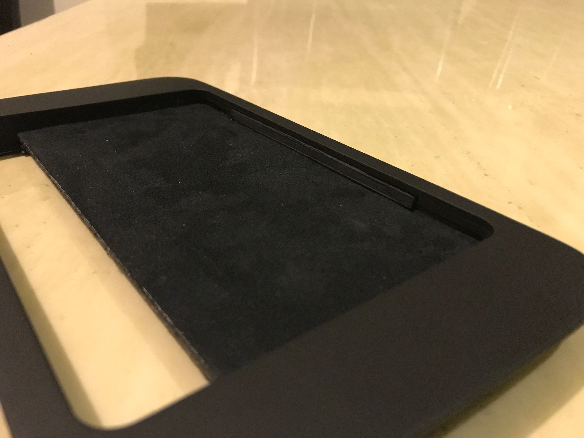 So after this failure, I sanded the silver paint and decided to go with the good ol' flat black. Before this, I repainted it with primer and sanded again the surface to make it smooth. After it was painted, I added some balck suede to the back of the mount to protect the dash and also where the ipad sits. Previously, I had already installed the magnets behind my dash. This was the end result.