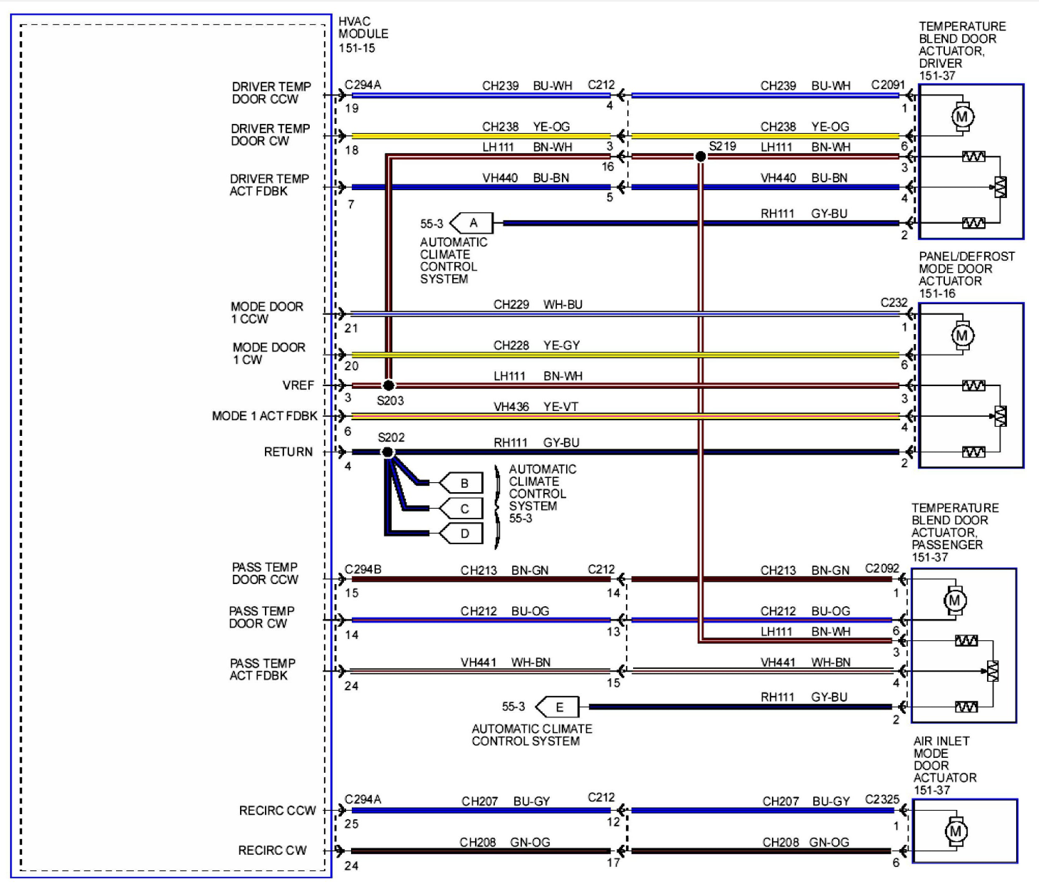 That would, theoretically, get the blend doors back in working order. Normally, you would have to have the Taurus wiring diagram for the plug coming out of the HVAC module (I didn't see if further up) but since the doors are not inoperable but switched, they are sort of already identified.