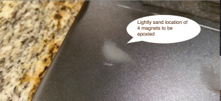 11) remove the case and sand the location for the magnets with some 220 sandpaper.