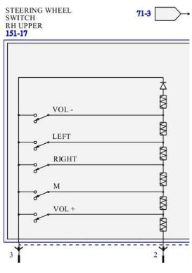 - left buttons and right buttons seem to have a very close resistive value so both sides do the same thing. They will need to go on a different SWC channel instead of how the harness has them joined to the blue line OR add a resistor in front of the left buttons to change the value slightly
