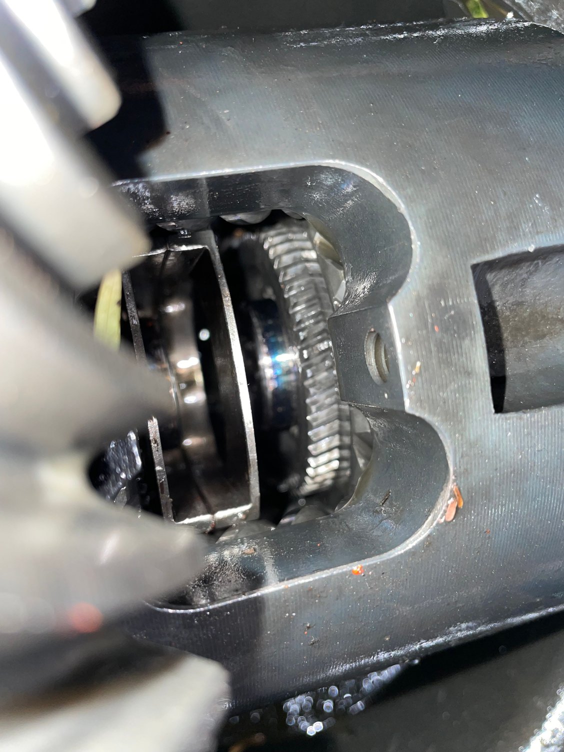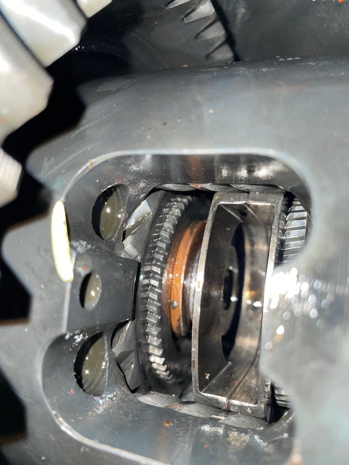 Abs sensor would be the wire right or is it something in the differential that I have to remove too? Only think I took off was the c clips the carrier pin and then I pulled the axles out, but yes picture where you can see it pushed in is the max it goes and the one with the c clip in I kinda had to force it in but still like it won’t spin