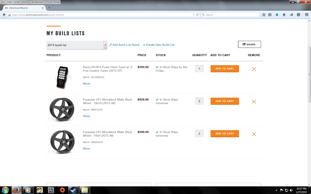 I couldn't get the screen shot..Apple! Here is my list, hopefully this is acceptable. I did change the wheel number to (4) but the price only reflects one. I am not sure why that happened.