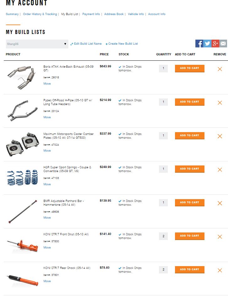 Summary Order History & Tracking My Build List Payment Info Address Book Vehicle Info Account Info