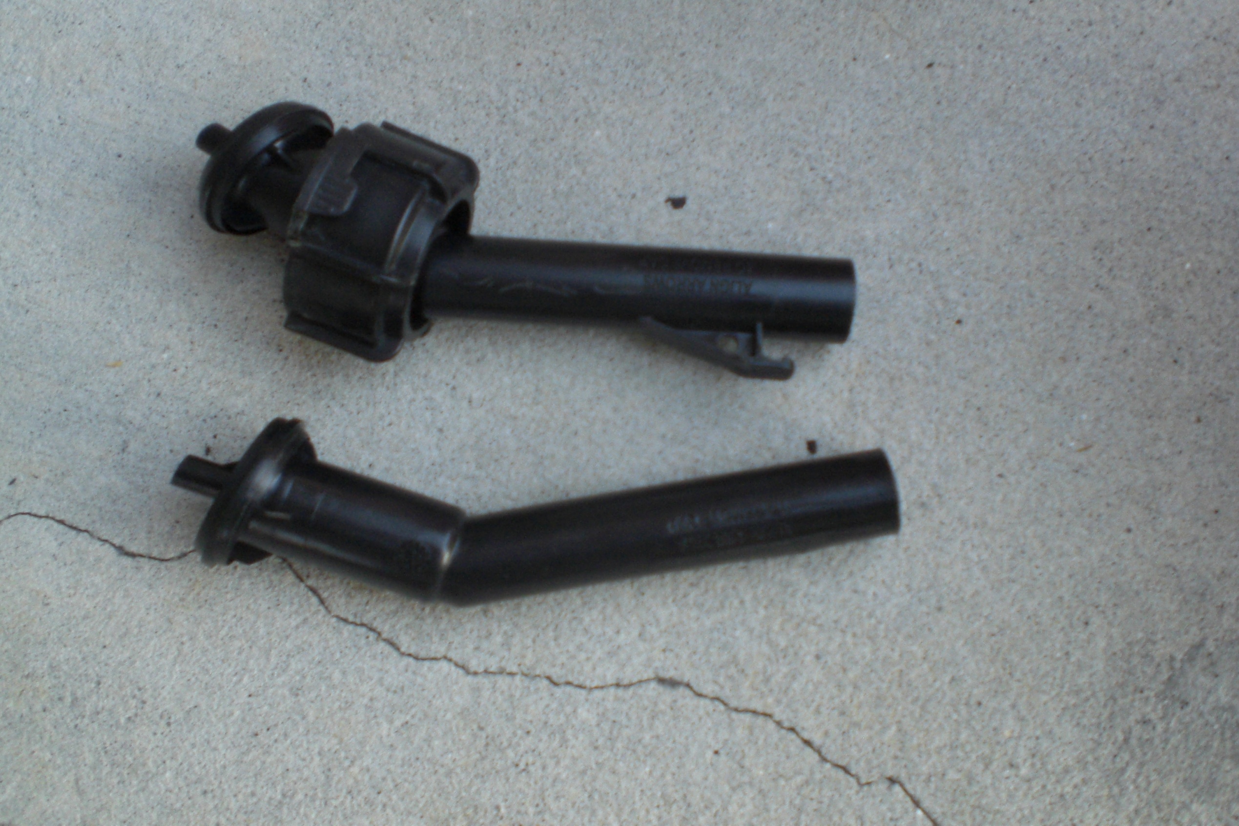 There has been some talk about fueling the Boss (any new Ford cap-less) with the special funnel. I was adding some pure gas to the Boss today from a regular gas can and thought this should work fine with a bit of modification. Sure enough it worked fine, so the cap-less is nothing special just depends on the diameter of the filling tube.