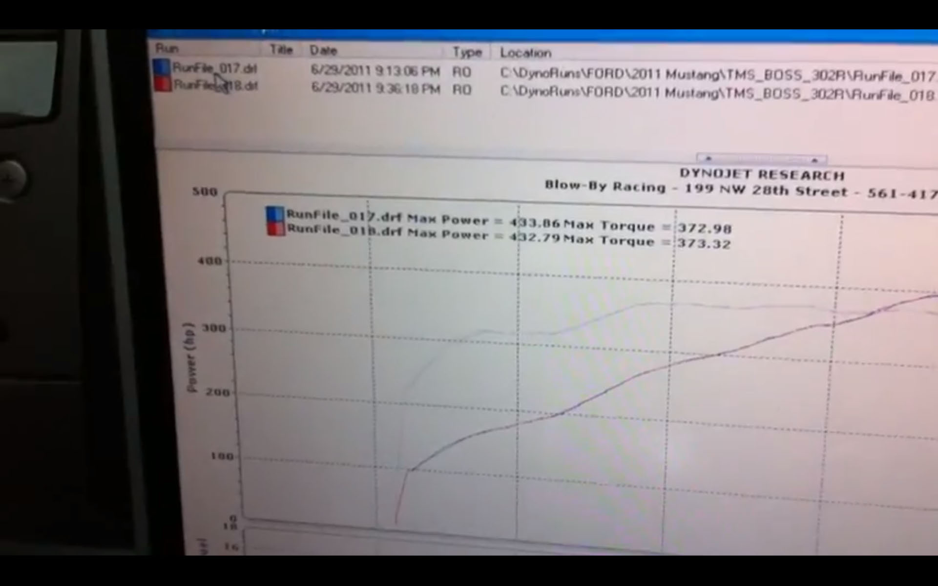 TMS AUTOSPORTS 2012 Boss 302 Race red on the dyno at BBR!
