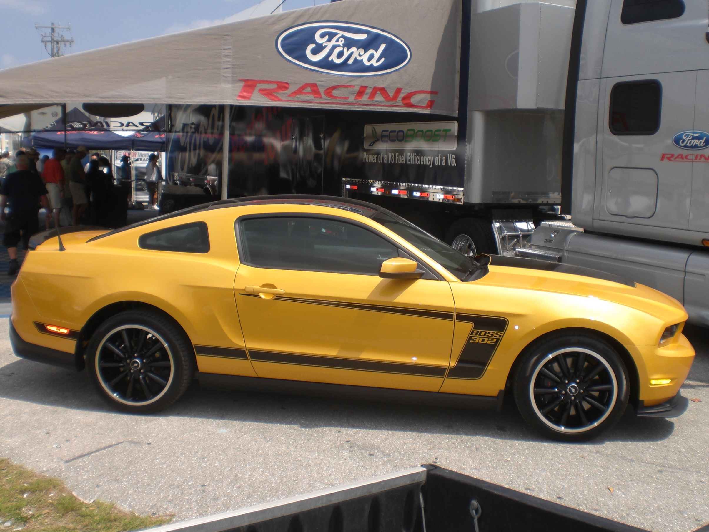 Super nice people there that worked for Ford. Everyone was happy to help out answer questions and they love what they do. I asked if they could find the DVD since they were not being handed out. He went and searched and came back with two (one for a friend with me). He also brought me a Boss 302 press kit. It is pretty thick, some things I have seen and some new info. He also let me have one of the signs that are displayed in-front of the Bosses on display, needless to say I was a happy boy today