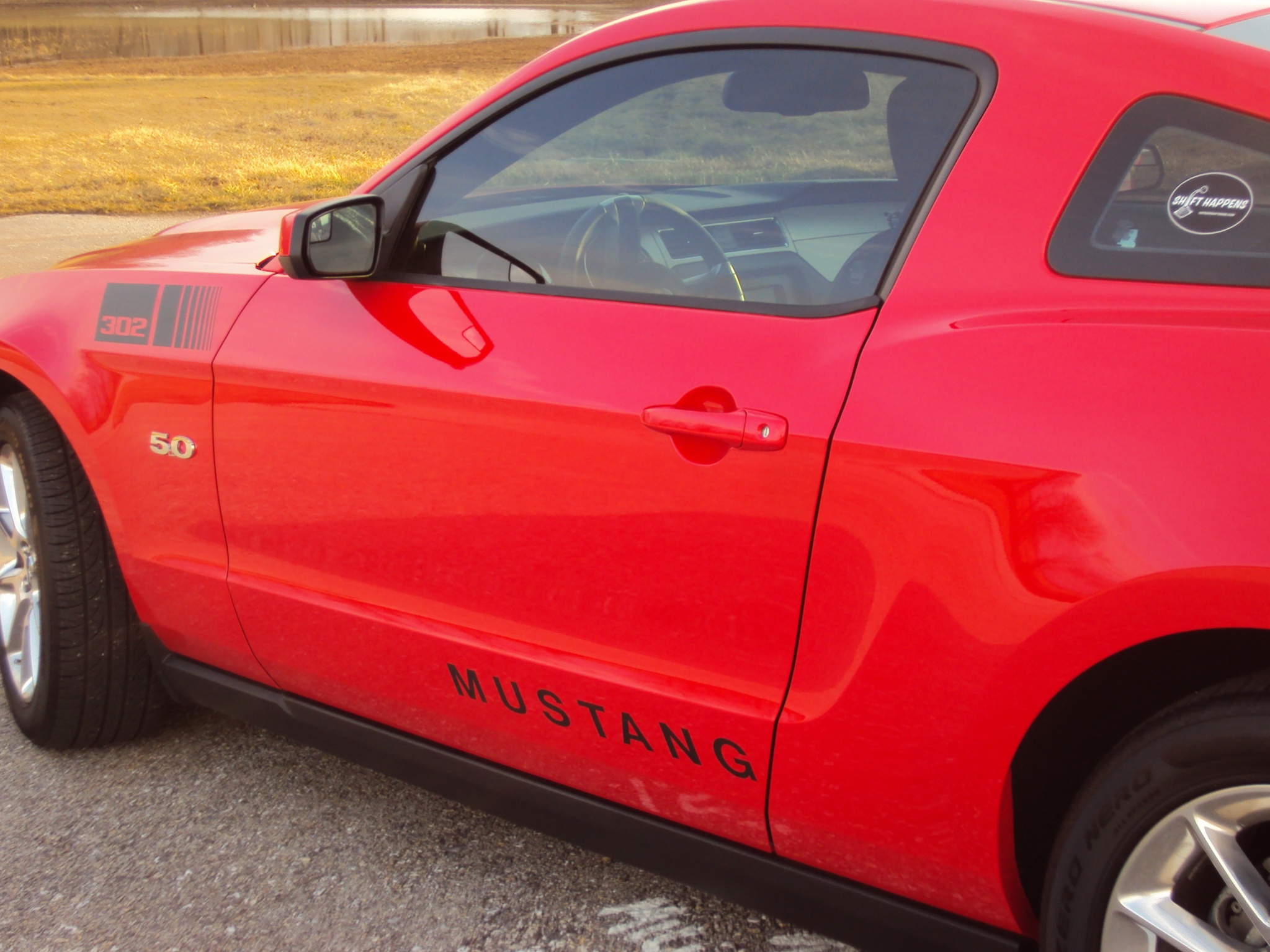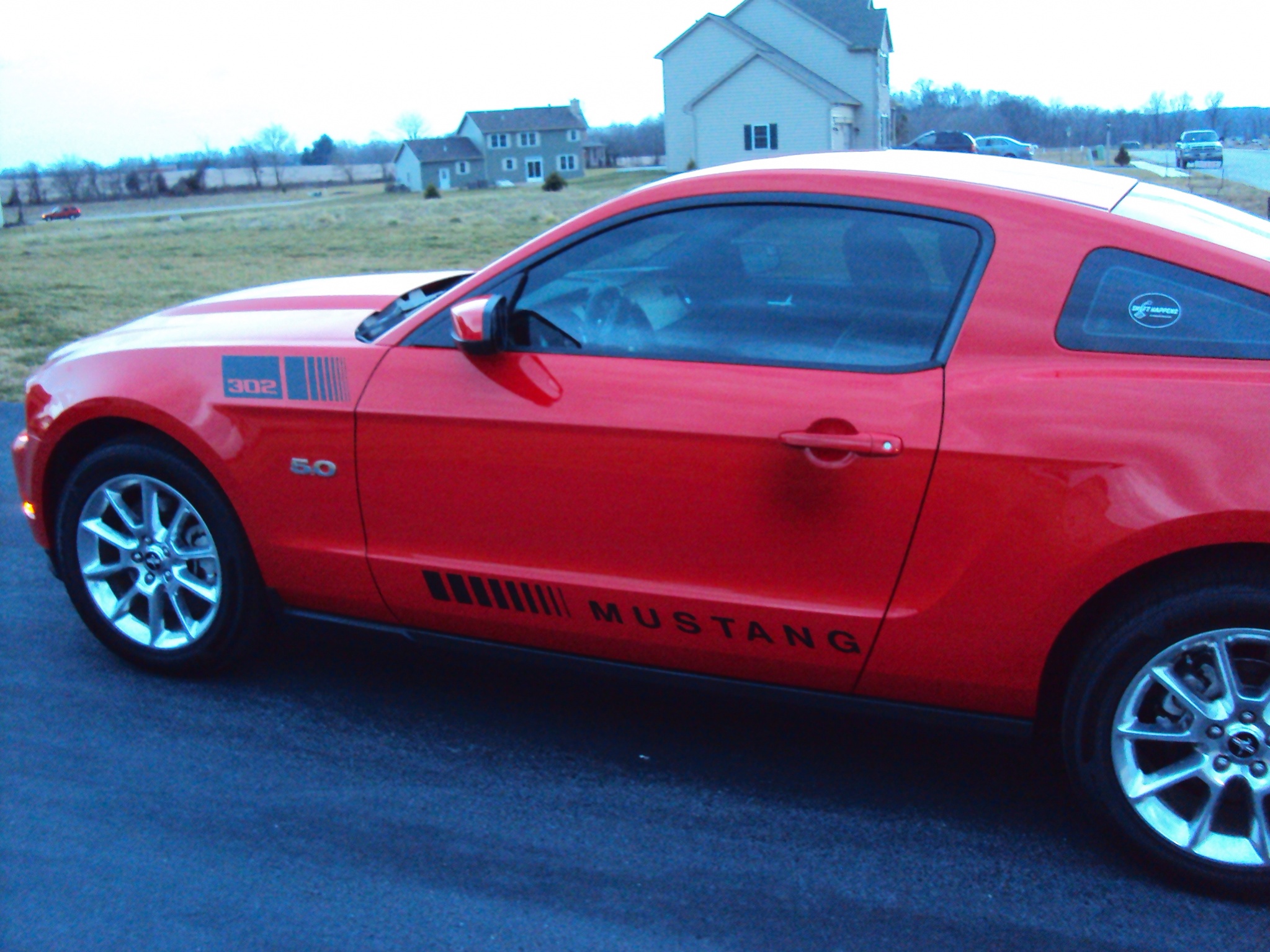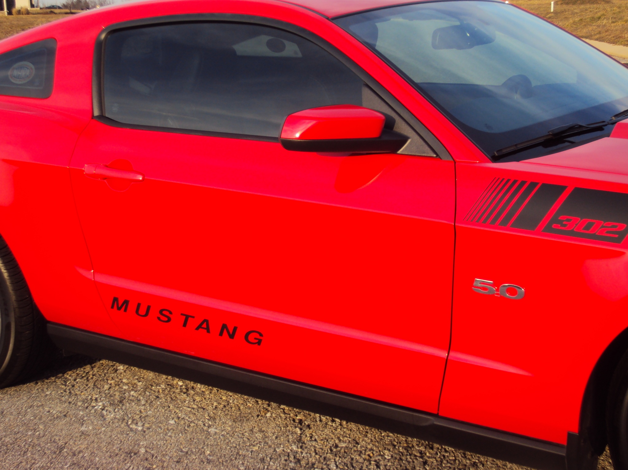 If you had the blacked out 5.0 badges, maybe the "302" at an angled font in the lower stripe would look good. It could fade, or be solid all the way across. I always took a good high-res pic of my car and went to a good photo editing program and tried a million things. Again, your car looks great, but the placement of the 302 on the upper fender reminds me of the dodge decals.