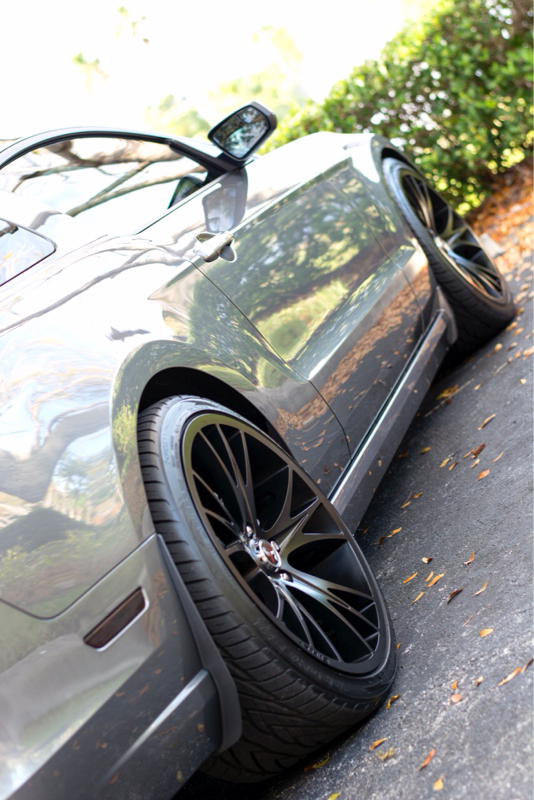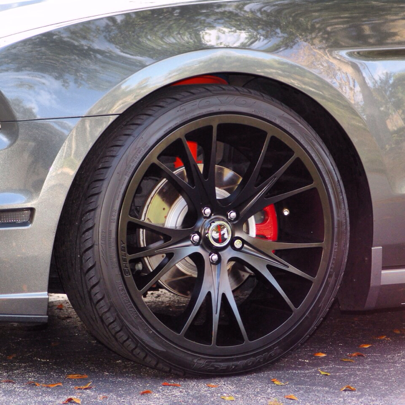 ok I chose Milan 197 rims for my car. Got 20x8.5 with +35mm up front riding on Conti extremes 255/35/20 and out back 20 x 10.5 +30mm offset. I am conflicted! I like it from most angles but from the 3/4 shot i would like to push the wheels in an inch. But the way the 285 sits on the 10 1/2" rim it does put all the tread under the wheel well meaning it doe not spray up along side the car. I put the GT500 mud flaps and roush splitters on and it helped draw your eye away from the offset but i am really wondering about just going with 20 x 10 +40mm from niche! $500 change but what to do with these rims?? What do you guys think? PS No rubbing at all at 130MPH or over speed bumps or Michigan pot holes! THEY SIMPLY DO NOT RUB!