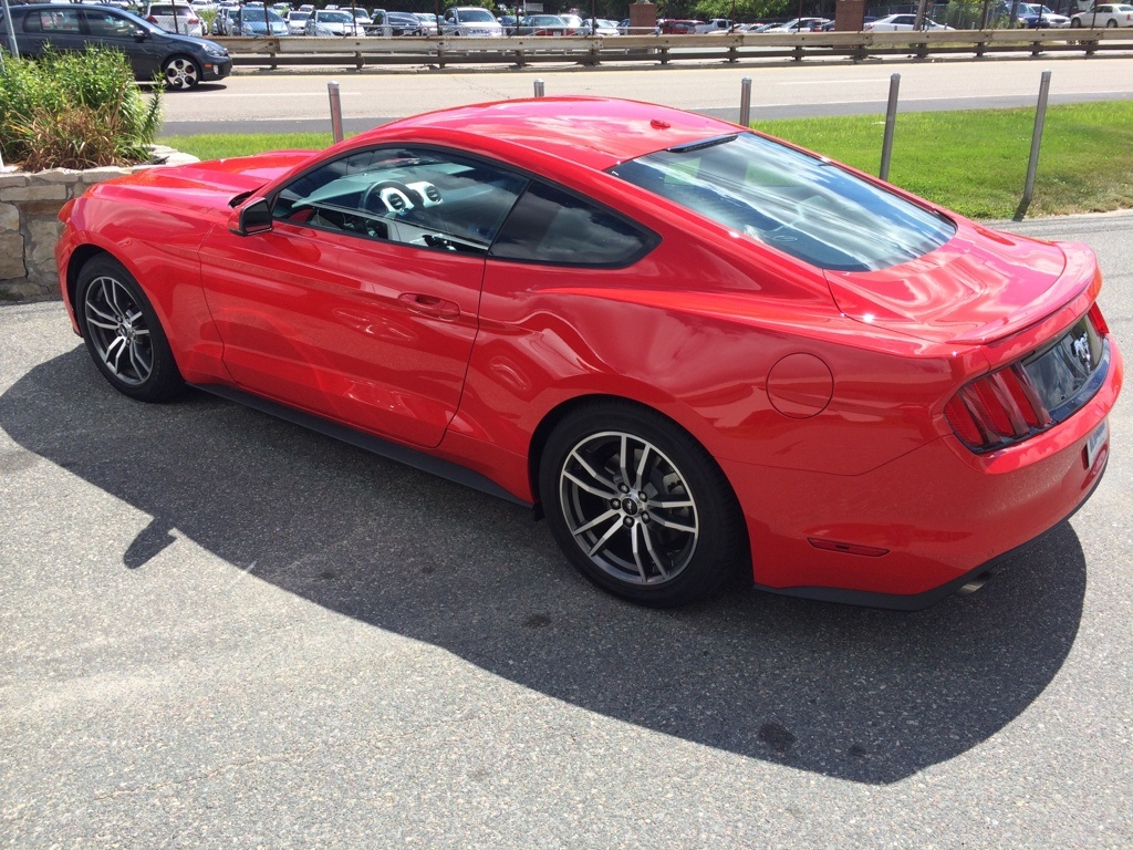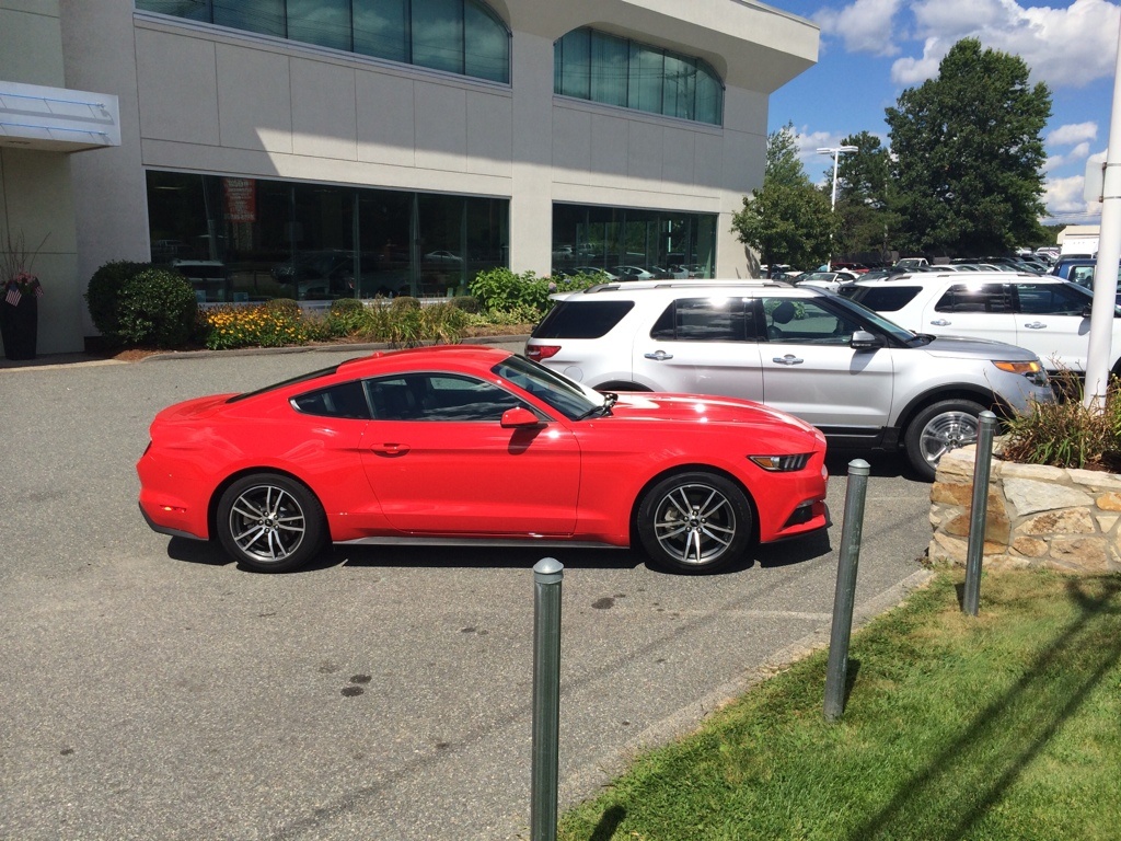 Local,dealer had one there for sales training so I stopped by to check out the car So Ill start with the generic... the car does look better in person, low and wide, great proportions, front end design fits perfect in real world. I did a bit of an exercise where i would take a pic then look at the pic and then back at the car without moving and its kinda crazy how seeing it in 3D with my eyes vs a screen makes it all fit together better... BTW good job Ford hiring this particular trainer, was VERY friendly and entertained my questions while i played with the car, MFT, etc Car was Race Red 201A with 68B ebony interior So my thoughts on various things that were important to me so i focused on them based on what I wanted to learn beyond what I already know. Shaker Pro... contrary to some of the audiophiles i thought the system sounded great, I played with it with some country music, rap, pop and it sounded great no matter what. It was definitely the equivalent of the H&K system in my audi (which was the upgrade) I think 99% of 401A (and 201A) buyers will think its awesome 68B interior, top door panels were soft touch as expected. however it was very soft material, softer than the doors in my audi. I would say the soft touch is on par with the material around the stack. the audi doors are a bit harder than that without being "hard plastic". very nicely done Ford. one thing to add, I thought the rest of the door material wasn't full on laptop case type of hard plastic so those not getting 68B might not be that disappointed. (if soft touch only comes 68B) The seats were great, soft and supportive. I am disappointed in the seatback range of motion when folding it forward to get someone out. it did have the "return" feature to your last spot. Also cant for the life of me understand why ford didn't put in power seat backs considering the general level of class in the interior (and the memory function) makes no sense This car like all the other trainers had the 18s. I felt they fit the car just fine, gaps didn't look excessive and they were more flush with the fenders than any S197 wheel except the brembo package. the rep did mention that they don't want all the wheels pushed all the way out like the optional 20s because it disrupts the airflow across the side of the car for fuel mileage purposes... interesting tidbit. MFT: haven't used a car with it for more than a minute until today, was just as responsive and fast as Idrive, audi MMI. Not to deny there weren't any real issues in the past but the newest version works fine. Body fit and finish was also very good, this was confirmed to be a preproduction car. I'm sure if I got out a measuring tape down the decimeter i could find gaps that weren't perfect. Hood alignment from 2 ft away looked very good from 10 ft away looked perfect. And i was purposely looking for misaligned angles and gaps. Hood gaps were a bit wider than my audi but the alignment was similar. Body panel gaps were similar to the audi I heard the ecoboost rev.. sounds good for a 4cyl turbo, its deep for a 4cyl turbo, but its unmistakably a 4cyl turbo. I would say on par with the BMW 428i stock... All in all it was great to be able to sit in one, play with the switch gear etc prior to the cars hitting lots Tried adding a few photos but the app wants no part of that.....