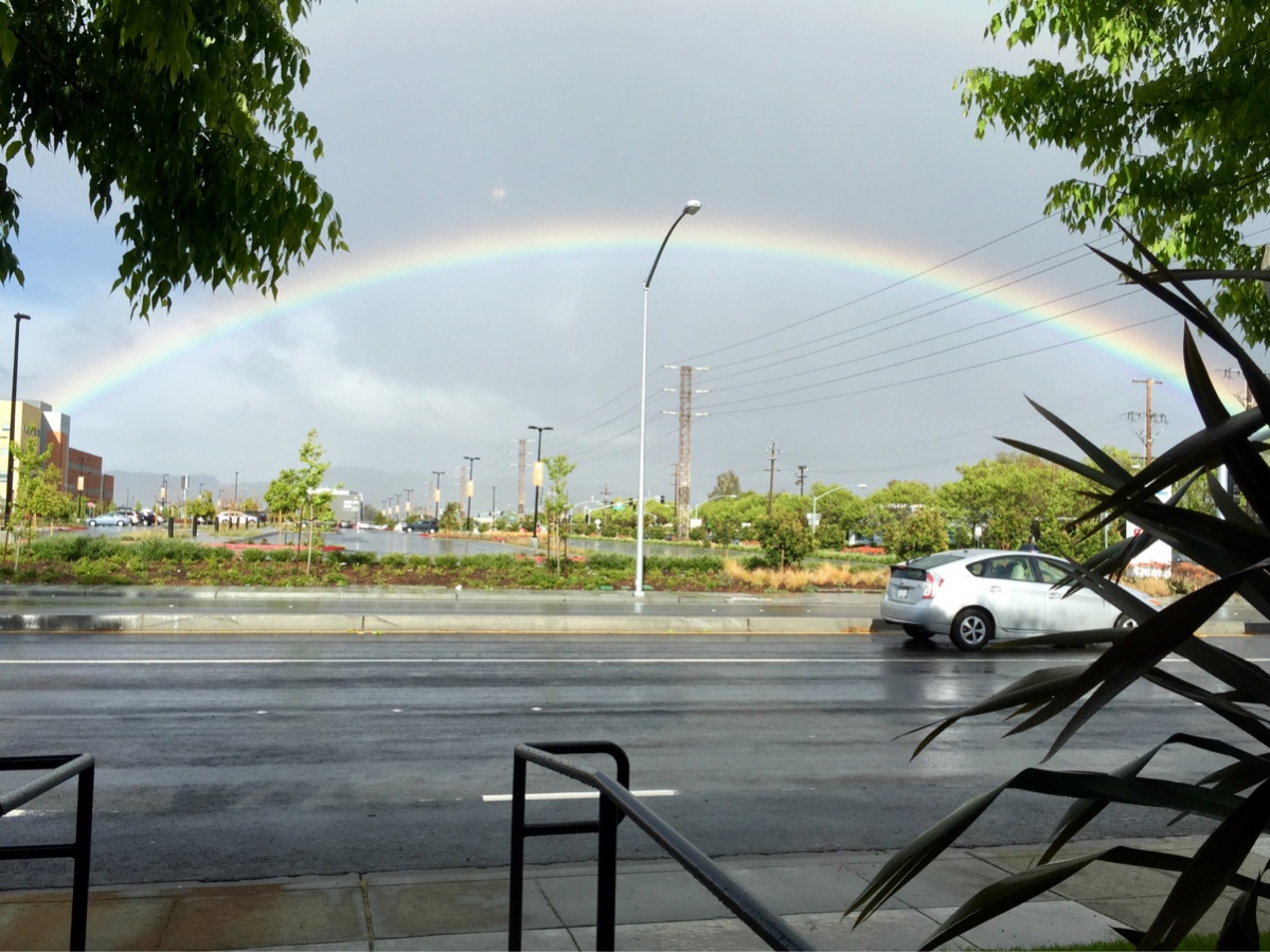 It's raining, and we look out the window to see this full on rainbow, and look what was right underneath!
