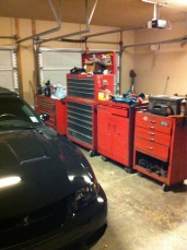 I didn't get a chance to organize yet (excuse the mess) but I built this toolbox wall between the car and the rest of the garage. Lol