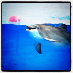 I took this wild dolphin photo with my Nikon. I have a few more somewhere of a family with the baby. They like to come chat with the dolphins at the local marine lab/park. The wild ones talking to the ones in the tank.
