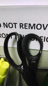 So the scissors from my office was stolen several weeks back. Suddenly its back today and covered with some white residue. Stapler is still missing somewhere.
