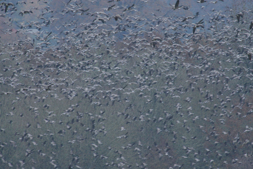 It was getting dark and I was playing around with the camera outside. A woodpecker was on one of the feeders. The shutter speed went off 1/2 sec. It caught his head in two different positions.