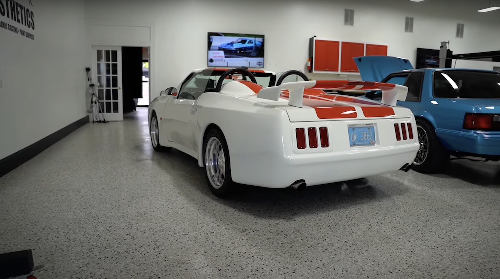 To create the Boss 5.0 roadster, GB took a regular old Mustang convertible and gave it an entirely new look with fiberglass body parts, all with one goal in mind – to make it look more like the 1969 Mach 1 than a modern Fox. During that process, they ditched the rear seat in favor of a tonneau cover with hoops to protect the occupants in the event of a rollover, though the car does have a two-piece hardtop that can be installed in the event inclement weather pops up.