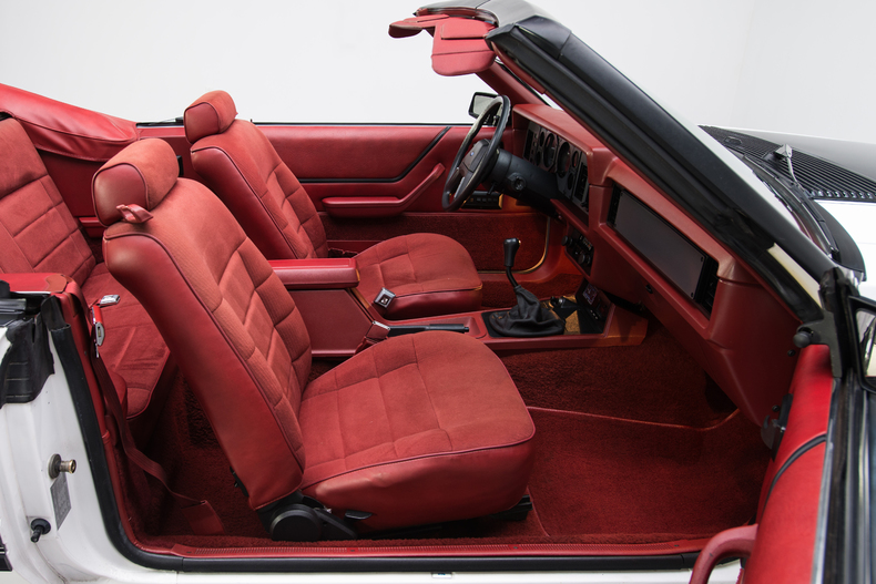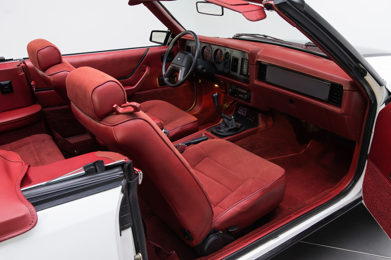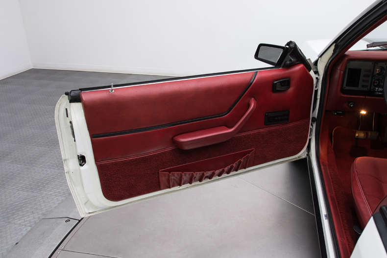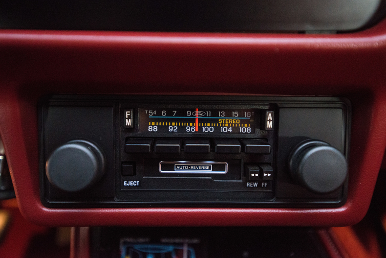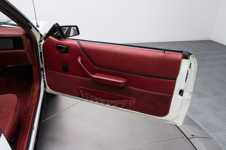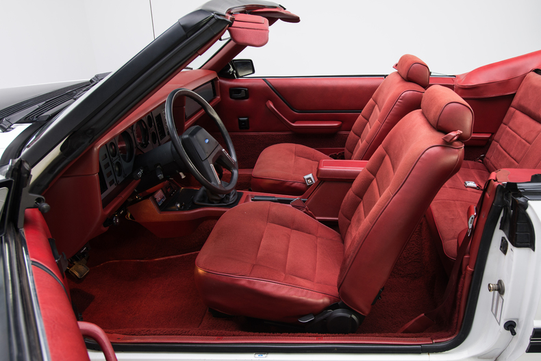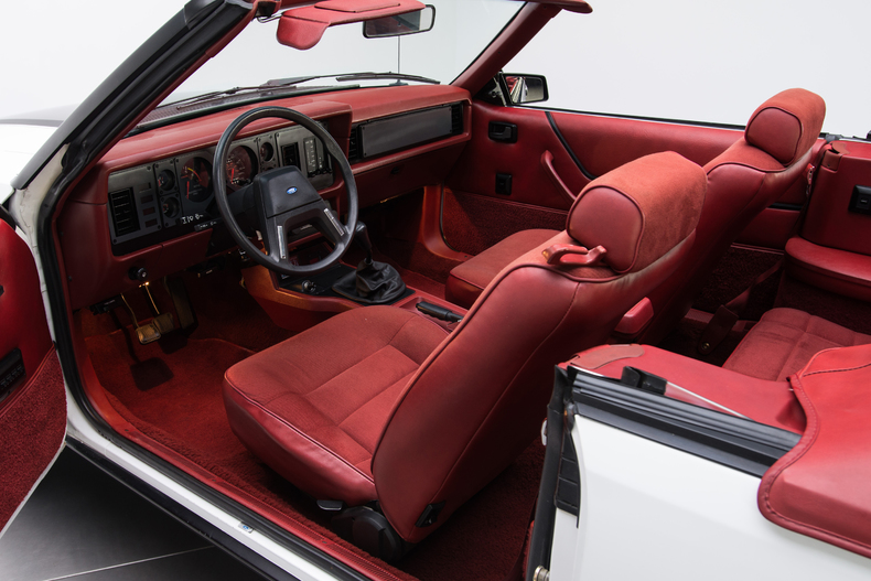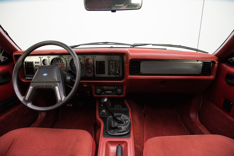 Inside, the 1984 Mustang is accented with details like a Canyon Red interior, original bucket seats and a black shifter.