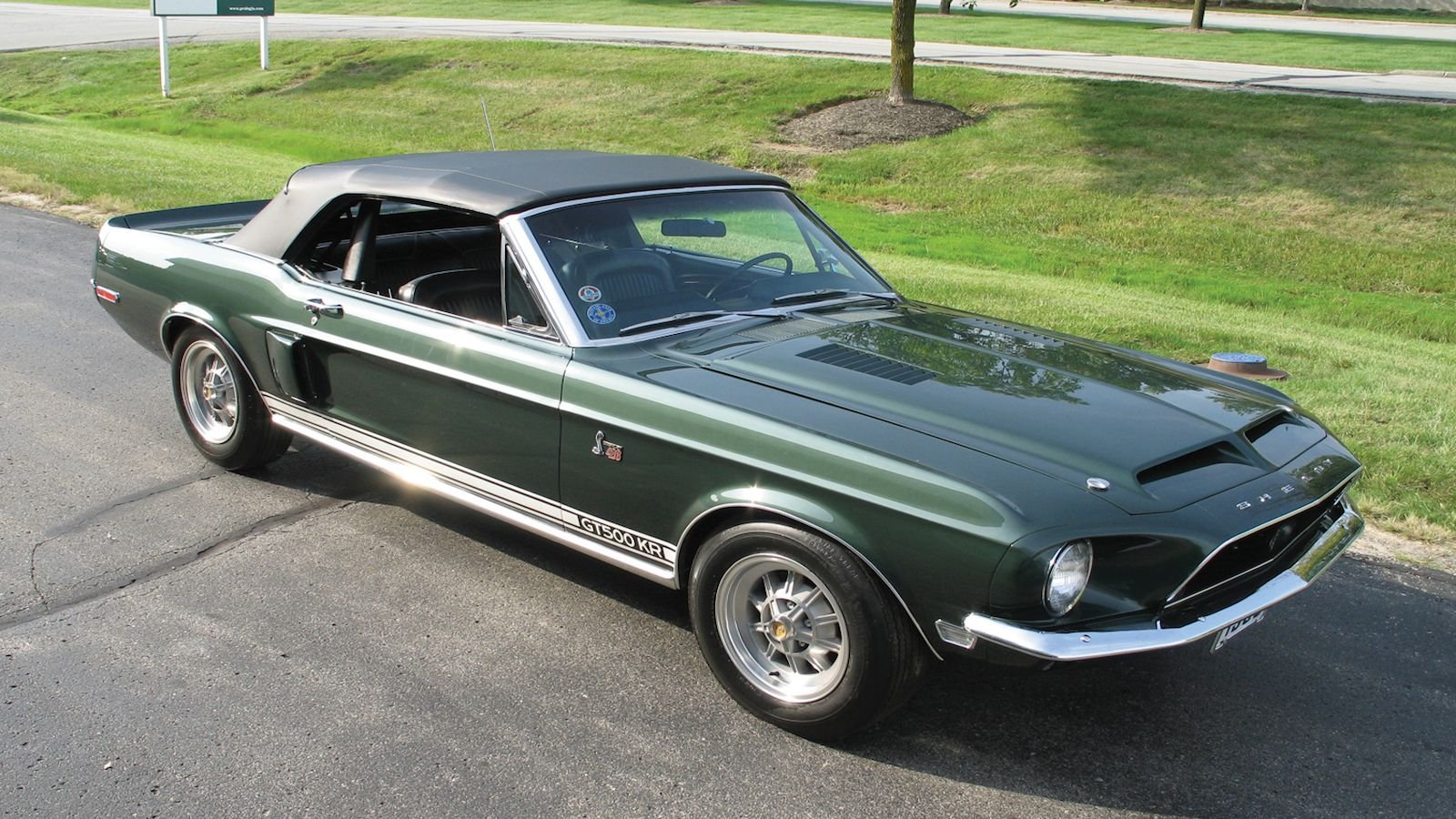 The GT500 was based on the second-generation Mustang and featured suspension tuned for comfort and the bodywork displayed air scoops, plus taillights inspired by the 1965 Ford Thunderbird. Power came from the Police interceptor V8. Eventually, the big-block V8 was upgraded to the 335 hp Cobra Jet and thus was born the 'KR' model which stood for "King of the Road."