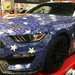 This is a 2016 Ford Shelby GT350, which made an appearance at the SEMA show throughout its High Five Tour. The patriotic Mustang is on a tour to raise money for the Wounded Warriors Family Support. The all-American Shelby is equipped with a V-8 5.2-liter engine, which produced 526 horsepower.