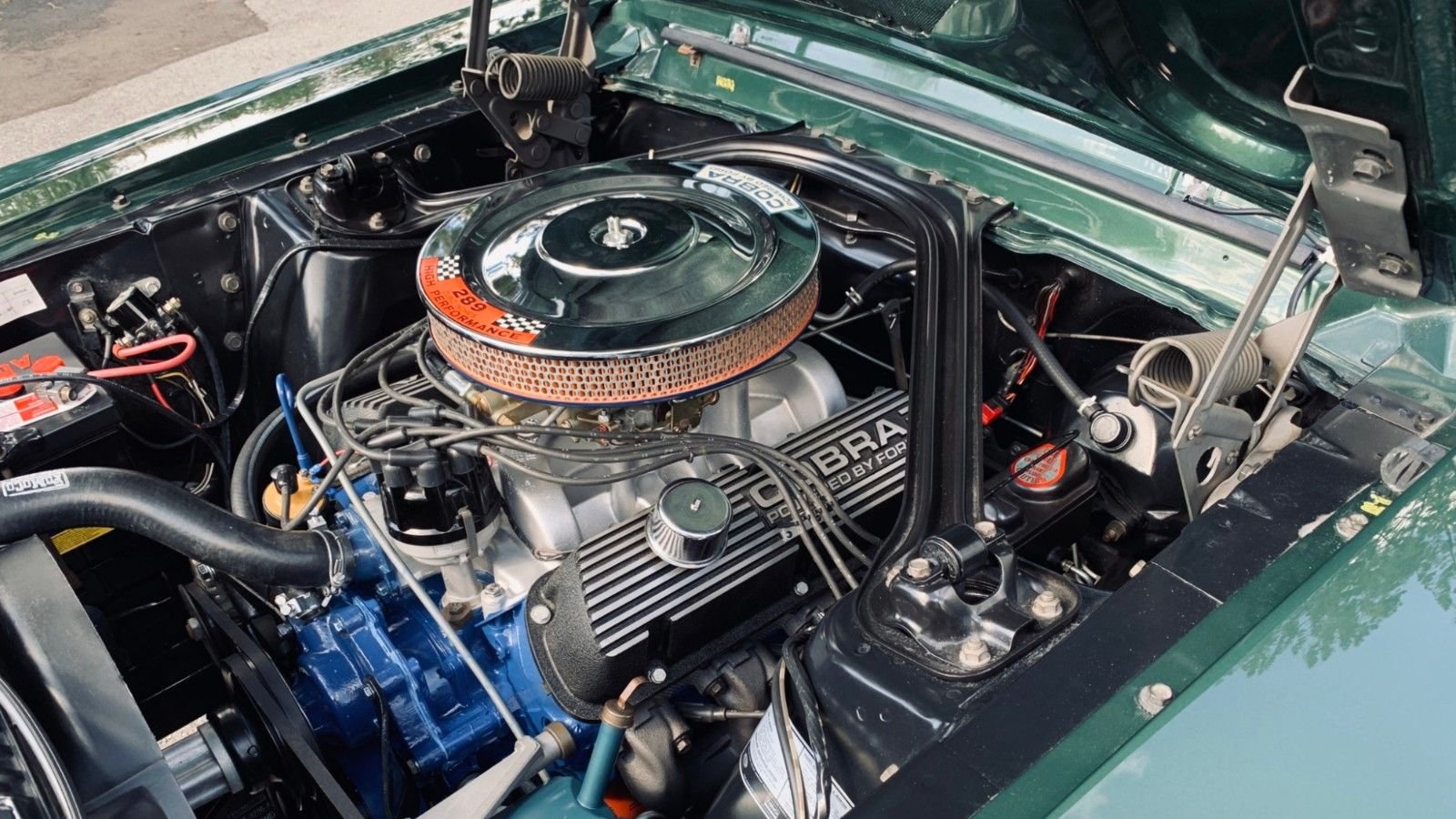 The 289ci HiPo V8 was rebuilt in March but is thought to have originally been installed in another 1967 Shelby Mustang. All of its power is sent through a Toploader 4-speed manual transmission.